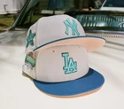 • Brand New • Stone Crown • Blue Brim • Peach Undervisor • White Sweatband • Flat Batterman • 100% Polyester • Made in Bangladesh 🇧🇩