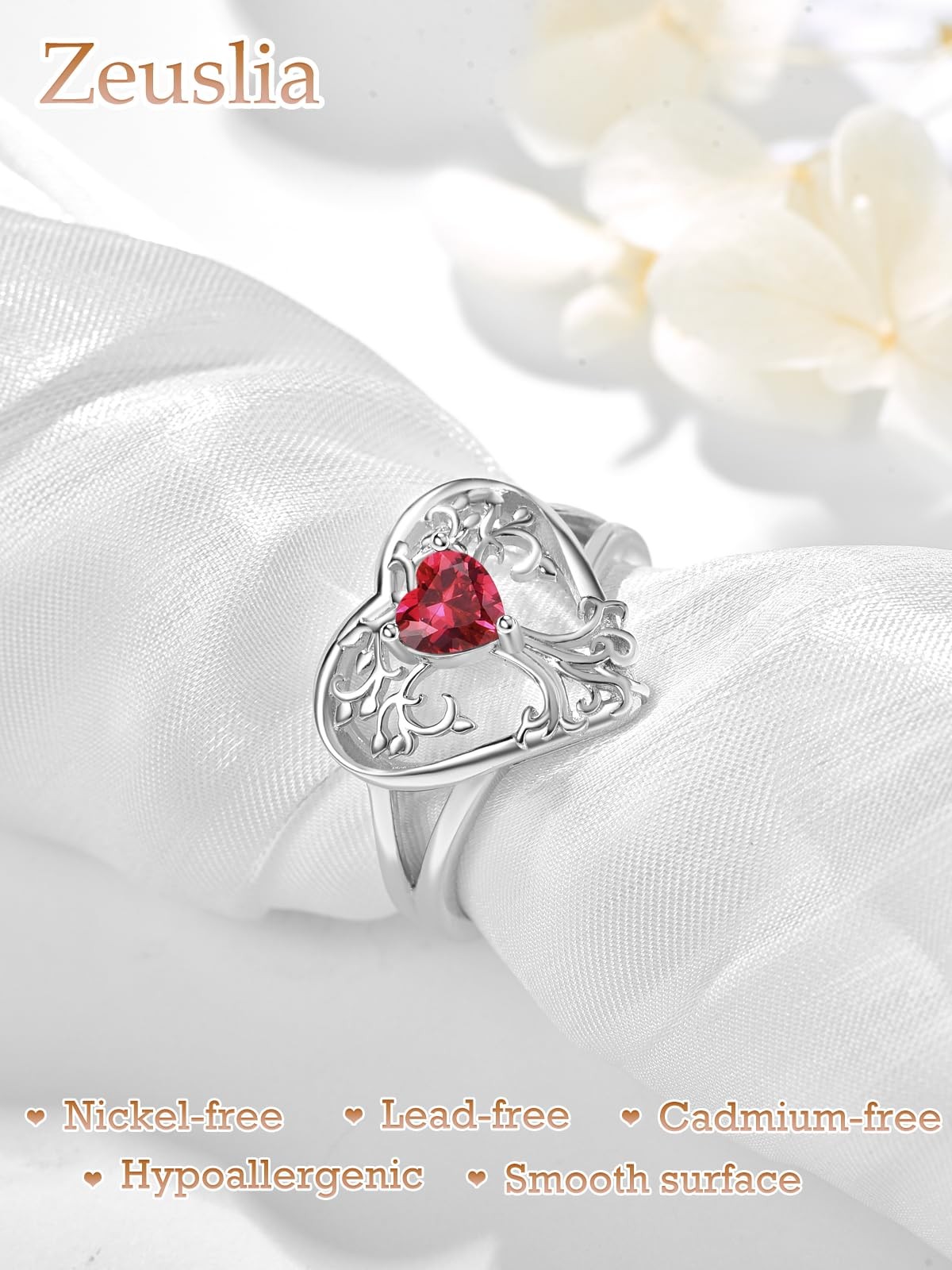 ’s Jewelry Pursuit is to Produce the Highest Quality Jewelry and Provide the Best Service About Our ring 1. The womens ring made of pure 925 sterling silver. No nickel, no lead, no cadmium and hypoallergenic. Eternal luster, not easy to fade. 2. Women ring makes you stand out from the crowd, brings courage and confidence. Jewelry silent, but more than any language to impress everyone. rings for women Product Details Product Name: Sterling Silver ring Material: 925 sterling silver Package List 1x sterling silver ring 1x Brand Gift Box 1x Polishing Cloth After-Sales Service If you have any questions or suggestions for this womens jewelry. Please feel free to contact us first we will give you a satisfactory solution. 【Tree of Life Ring】--The Tree of Life is a symbol of love, that infinite love. You can say this to your wife, your lover, your mom or your daughter to show your eternal love. 【Rings are All S925 Sterling Silver】--Heart jewelry is S925 sterling silver .Real S925 products, and the product withstands any kind of S925 test. 【Ruby Birthstone Ring- Love Gifts for Women】--Tree of life heart ring with 1 carat natural ruby.The ring size is 6-12mm/0.24"-0.47", Ring width is 0.12", Silver weight: 3.5g. Adjustable Size. 【Birthstones for 12 Months】--The heart birthstone ring makes a perfect birthday gift for women. Garnet for Jan, Amethyst for Feb, Aquamarine for March, Simulated Diamond for Apr, Emerald for May, Moonstone or Alexandrite for June, Ruby for July, Peridot for Aug, Sapphire for Sept, Tourmaline for Oct, Citrine for Nov, Topaz for Dec. 【Ring for Women with a Jewelry Box】The Tree of Life heart-shaped ring, paired with exquisite packaging as a gift for Mothers Day, Valentine's Day, Christmas, Birthday, Wedding and Anniversary. If you have any questions about our products, please contact us directly.