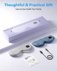 【Three Temperature Modes】Our heated eye mask offers three temperature settings (Low: 107.6°F, Medium: 125.6°F, High: 143.6°F) to meet your needs. You can choose the appropriate temperature mode based on your requirements. The adjustable headband ensures a perfect fit, enhancing your relaxation experience. 【Built-in Rechargeable Battery】Equipped with a Type-C charging cable and a 1000mAh battery, our eye heating pad can be fully charged in just 1.5 hours, providing up to 4 sessions of 15 minutes each on a full charge. It supports multiple charging methods (USB port, PC USB port, power bank), making it easy to keep powered up and perfect for your travel needs. 【Fast and Even Heating】This eye mask uses advanced metal fiber heating material, ensuring quick and even heating. It helps promote eye blood circulation, relieve eye discomfort, and improve sleep quality, especially for those facing overtime work, late-night activities, long-distance travel, or intense study sessions. 【Portable & Optimal Duration】Tired of dealing with tangled wires and limited mobility? Our cordless heated eye mask is lightweight and portable. The 15-minute auto shut-off feature ensures that the heated eye mask provides maximum benefits without causing discomfort or overheating, making it perfect for use at home, during travel, or at work. 【Easy to Clean】The cover of this eye mask for dry eyes is detachable and washable, and it comes with an extra cover for easy replacement, ensuring cleanliness and hygiene.