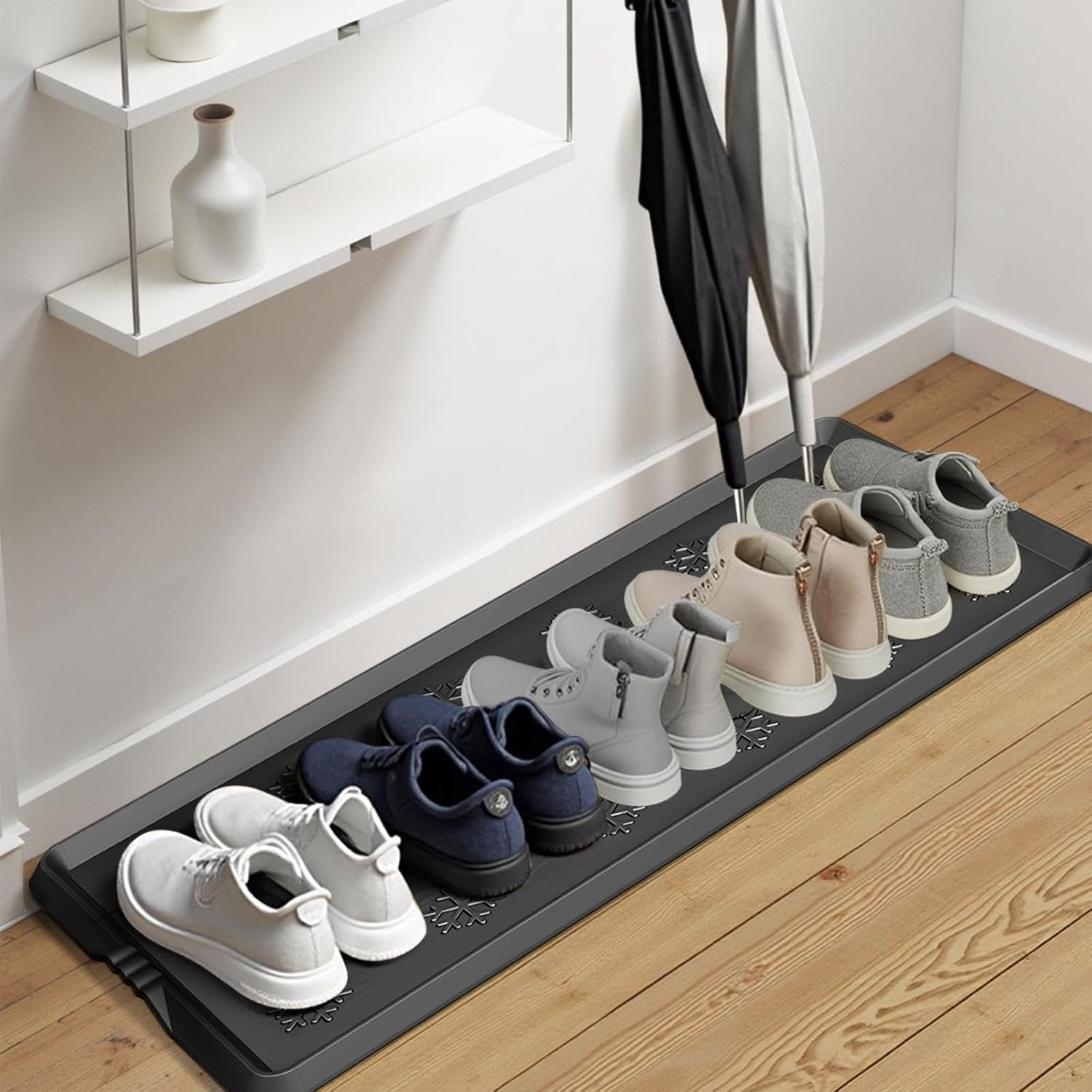 Store New Arrivals Add to Favorite View Feedback Contact Heavy Duty Boot Trays Natural Rubber Shoe Mat Tray for Entryway Large Boot Mat Tray Multi-Purpose for Outdoor Door Mats 16X42 Inch 2 Pack Description Color Black Material Rubber Item Weight 10.16 pounds Shape Rectangular Package Dimensions 17.99 x 5.35 x 4.96 inches Size 16" x 42" 2pack 【Perfect Size Boot Tray】The 32 inch design is larger than other small shoe matt tray for entryway, easily accommodating 3 pairs of large shoes, so that each pair of shoes has a place, no longer have to put shoes on the side to cause water stains to flow to the wooden floor, protect the wooden floor and make your doorway more tidy. 42 inches can accommodate 4 pairs of large shoes. We reserve 10 inches of space for each pair of shoes to fit most shoes 【Waterproof and Keep the Entrance Tidy】Are you worried that on rainy and snowy days, you will always be brought back with some mud and snow from your shoes that go out, staining and damaging your wooden floor? Hi friends, come and try our shoe tray, it can effectively capture dirt, mud and water, so that you can easily keep the entrance organized and clean, the surface snowflake texture is simple and stylish, and it can prevent the shoes from falling into mud and dirty water, keep the shoes dry 【Durable and Heavy Duty Boot Tray】Different from other boot mat tray, our rubber boot tray are made of natural rubber, which has better slip resistance, higher tear resistance and less odor, not easy to tear and bend. Plastic shoe tray and other materials shoe tray for entryway will not flatten, and even crack easily. Our shoe mat will not bend even if they step on the edge, which can better stay in place and keep the shape of the shoe tray. 【Multi-functional Boot Tray】Our multi-purpose boot tray can be used to store shoes, boots to keep the door tidy, and also to hold pet food spills and cat litter. It can also be placed in the garage, car trunk, storage of some car parts and other items. Rainy days can also be used to put rain boots and umbrellas, usually can also be used as a plant tray. 【Easy to clean】The rubberized material makes it easily resistant to dirt and mud, and it can be refreshed by simply rinsing it with water, and it won't fade for long-term use. If you are not satisfied with our indoor boot tray, you can ask Azadx directly and we will solve it for you, we just want you to get the product you like Product description ABOUT US We offer the best prices around on high quality products. Our E-store includes media such as books, movies, music and games while offering electronics, toys, sporting apparel, clothing, tools, general home, garden items and more. SHIPPING We are always working hard to ensure your package arrives as soon as possible. Please understand that some factors like weather, high postal traffic, and the performance of shipping companies are outside of our control. We offer free shipping to the lower 48 states and ship within 2 business days of payment, usually sooner. We do not accept P.O. Boxes. Please provide a physical address. RETURNS We offer a 30-Day Return Policy on items which you are not completely satisfied with. You have the option for a full-refund or an exchange of the item. No returns are available on items shipped outside of the USA. PAYMENT We accept PayPal. CONTACT US This page content is yet to come Please ad us to your favorite seller and visit again later Thank You CUSTOMER SATISFACTION We try our very best to make sure every customer is completely satisfied. If there's a problem, message us! We're happy to help.