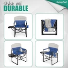 Camping Directors Chair, Heavy Duty,Oversized Portable Folding Chair with Side Table, Pocket for Beach, Fishing,Trip,Picnic,Lawn,Concert Outdoor Foldable Camp Chairs Thoughtful Design for You: The anti-pinching & click-to-lock design help you to set camping directors chair up effortlessly and safely. The open size is 21"x25"x36", and the packed size 20"x19"x5". The folding camping chair is easy-carrying and can be stored almost anywhere. Convenient Storage: The directors chair with side table and the integrated beverage & holders free your hands, and the double front multi-pocket attached on side providing ample storage to store your books, magazines, iPad, keys, wallets, keeping your belongings organized. Built to Last: The sturdy steel frame construction affords up to 300 LBS (136KG) and the chair weight of LBS ( The double-seam 600x300D Oxford Cloth & 200g mesh has great strength, durability, and breathability. This folding camp chair is great for adults Heavy Duty. Easy-Peasy: Setting this director chair up is effortless and fast. You only have to take it out from the Handle straps attached carry bag, pull the frame apart, and click the frame to lock… Ta-Da! Here you go - now you can enjoy this sturdy & comfy director chair and easily transport to camp, lawn, concerts, festivals. A Camping Director Chair that is Built for Anywhere: Use it as a camping chair, folding chair, lawn chair, travel chair, beach chair and more. Suitable for outdoor adventures, tailgating, fishing, backpacking, beach, picnic, sport games, car travelling, or just put it in the backyard, cabin, balcony, patio lawn parties. The camping chair is an essential to add to your camping accessories.