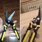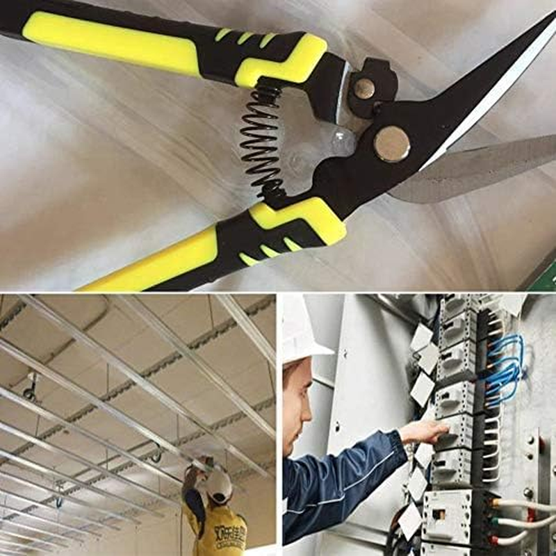 【Unique Design】The handle is wrapped by high-quality rubber, with an ergonomic mechanical design, perfectly fits the handle, comfortable to hold, and labor-saving. 【Application】It is very suitable for cutting iron sheets, wire ropes, plants and other things. It is a practical multifunctional scissors. 【Material】It is made of high-quality alloy steel, wear-resistant, anti-corrosion, high hardness, safe to use and long service life. 【Size】Its size is about 45*205mm, moderate in size, easy to use, you can buy it with confidence. 【Easy To Use】The stainless steel curved blade can easily cut it straight, easy to adjust the angle to fit the cutting edge, saving time and energy during cutting. Industrial Scissors Steel Wire Rope Scissor Multi-Purpose Tin Snips ,Scissor Carpet Scissor for Wirerope Stainless Steel Rope Cutter,Cutting Tools
