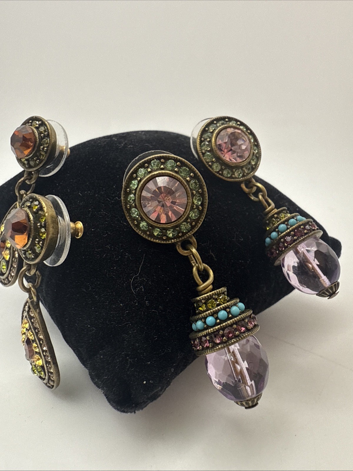 ✨💜 Heidi Daus Swarovski Crystal Dangle Earrings – Enchanted Elegance for Pierced Ears 💚💫 Step into a world of vintage glamour and mystical sparkle with these gorgeous Heidi Daus dangle earrings! 🌟💖 Each pair is a wearable work of art, featuring dazzling Swarovski crystals that shimmer in royal purples, deep burgundy, mystical greens, golden amber, and magical iridescence. 💜💛💚 Whether you’re dressing up for a night under the stars ✨🌙 or adding flair to your day look, these earrings bring timeless elegance and a touch of enchantment. 🔮🌸 ⸻ 💎✨ Item Details: • 🏷️ Designer: Heidi Daus (signed) • 💠 Stones: Genuine Swarovski Crystals – Multicolored Magic ✨ • 🎨 Color Themes: • Pair 1 – 💜 Amethyst Purple, Burgundy, Royal Tones • Pair 2 – 💚 Light Green, 🍯 Golden Amber, Subtle Iridescence • 📏 Style: Dangly drop earrings for pierced ears • 🌟 Design: Elegant, artistic, statement-worthy • 🧵 Material: Gold-tone mixed metal with crystal embellishments • 📦 Condition: Excellent pre-owned — well cared for 🌟 ⸻ 🧚 Why You’ll Love Them: • 💫 Romantic, regal, and radiant — a true showstopper • 💃 Perfect for collectors, special occasions, or magical everyday flair • 🪄 They glow with character — full of vintage charm and sparkle! ⸻ 🎁 Packaged with care, shipped with love and tracking 💌 Open to offers — let these Heidi Daus beauties cast their spell on your jewelry box today!