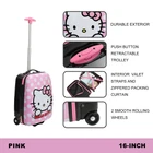 Bioworld Hello Kitty 16 Inch Telescopic Youth Carry-on Luggage Suitcase Product Details Style: Hello Kitty Pink Brand: Bioworld MPN: LRG663QHKCPP00 UPC: 197394704529 EAN: 0197394704529 Package Dimensions: 19.21 x 13.19 x 8.46 inches Item Weight: 3.2 ounces Department: Unisex Child Manufacturer: Bioworld Country of Origin: China Item Weight: 0.2 Pounds Sturdy Molded EVA Material: Constructed from durable molded EVA, this luggage ensures protection for belongings while remaining lightweight and easy for young travelers to handle. Telescopic Handle: The luggage features a convenient telescopic handle, allowing for smooth and easy maneuverability, perfect for kids navigating through airports or stations. Travel with Hello Kitty: Whether heading for a family vacation or an overnight stay, let the Hello Kitty 16 Inch Telescopic Youth Luggage bring joy and functionality to your child's travel experiences. Care Instructions: Maintain the pristine appearance of the Hello Kitty 16 Inch Telescopic Youth Luggage with simple care - Wipe clean with a soft, damp cloth as needed to preserve the vibrant design. Introduce a touch of cuteness and functionality to your travels with the Hello Kitty 16 Inch Telescopic Youth Luggage. Crafted from molded EVA material, this luggage showcases the iconic Hello Kitty design, offering both durability and charm for young travelers.
