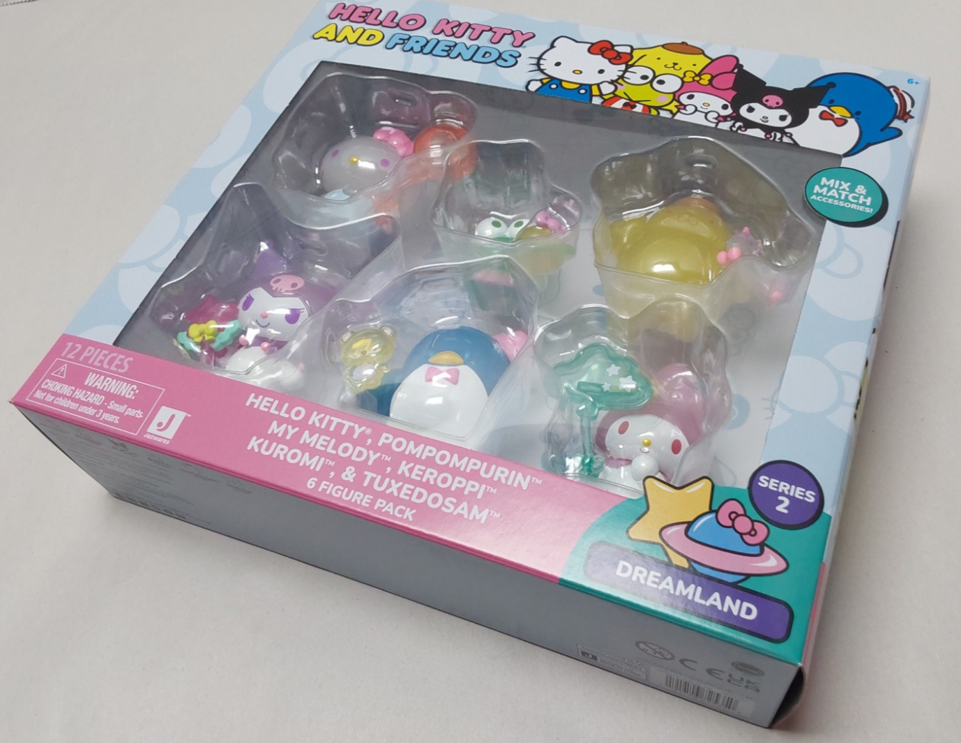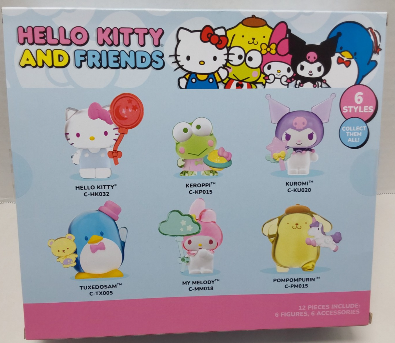 HELLO KITTY, POMPOMPURIN, MY MELODY, KEROPPI. KUROMI & TUXEDOSAM 6 FIGURE PACK with interchangeable accessories. Minimal wear to packaging. Will ship in box with protective Packaging. In hand and ready to ship with care in protective packaging.