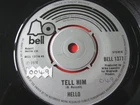 Artist: Hello Title: Tell Him Format: 7" Label & Cat No: Bell BELL1377 Grading: EX Year: 1974 Additional info: there is writing on label, Tell Him/Lightning *********************************************************************************** • thespacebar.records have been selling vinyl online for over 20 years. • We don't use stock photos. What you see is what you get. If we have multiple copies we'll send the best one. • If there are any issues when we come to pack up your record we will message to let you know and wait for you to confirm or cancel prior to shipping. • Much of our stock is in near-perfect condition. • Many items are unplayed but are graded conservatively as EX. • We're in the process of adding more photos to our listings. It's a big job. In the meantime if you'd like to see more images of any item, please send a message and we'll fast-track it. • We grade the vinyl 1st and the sleeve (if applicable) 2nd. • If there is only one grading and it seems very cheap, please check the item description carefully as we sell some records without sleeves and some sleeves without records. We always check with buyers before posting these items. • Singles that don't have a picture sleeve are supplied in an original company sleeve where possible. Otherwise they are sent in a plain white sleeve. • Records are supplied with a 400g polythene sleeve for protection. • To prevent seam splits, records are removed from their original sleeves for posting. • Everything is pressed in the UK unless otherwise stated in the item description. • More information/track listings/photographs available on request. Enjoy browsing our shop - Jeff & Catherine