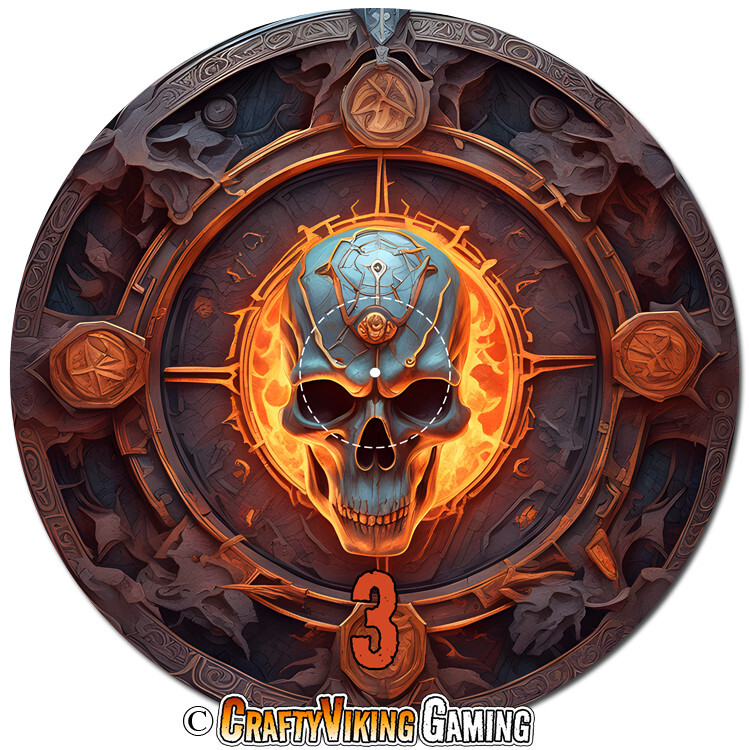 These Hells Gate objective markers are fantastic! The fiery demon skull design looks menacing on the battlefield, and the neoprene material keeps them firmly in place. The clear center markings and numbered edges make measuring objectives a breeze during Warhammer 40K matches. Love how the 2mm thickness makes them easy to store but still visible during play. The rubber backing prevents any sliding when placing models near them. Perfect upgrade from basic tokens!