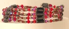 This handmade bracelet features natural hematite stones in a round shape, embellished with red enamel and crystal details in a multicolor design. The adjustable wrap-around style is secured with a magnetic closure, making it easy to wear. Ideal for occasions like Mother's Day, anniversary, birthday, or Valentine's Day, this bracelet is a unique piece with a beauty and art theme, perfect for adding a touch of fashion and style to any outfit.