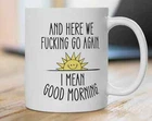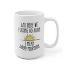 Here We Go Again White Ceramic Mug Funny Coffee Mug Large Coffee Cup Cute Kawaii Gift Present For Mom Rude Office Joke Mug Lunch Room Product Details.. This high quality 11oz. ceramic white mug has a premium hard coat that provides crisp and vibrant color reproduction sure to last for years. Perfect for all hot & cold beverages. The highest quality printing possible is used. It will never fade no matter how many times you wash it. Material: 100% Ceramic. Print both sides. Dishwasher and Microwave Safe. High Gloss + Premium White Finish. Printed in the U.S.A. Personalized & Custom. We support personalized and custom mug to add custom, when placing an order, you can add notes to the "order note" in shipping address section. Also you can contact us directly via message. Shipping Info. Ready to ship in 1 to 2 business days, All products are made-to-order and proudly printed in the United States. Shipped by USPS and DHL, You will receive your order in 5-7 days. Replace & Refund. All products are defective during shipping broken, chipped will be replaced free of charge. You are not satisfied with the product, we will refund 100% money to you. If any other issues arise, please do not hesitate to message, we would be more than happy to assist you.