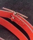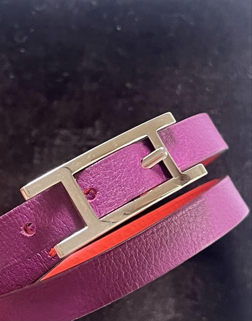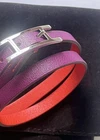 Hermes Leather Bracelet B-Api Dubletour Reversible Excellent Used No Box Key Features Elevate your style with this Hermes Be A Pi Double Tour Leather Bracelet. Crafted from high-quality leather with a silver-tone H hardware, this reversible bracelet features a sleek, minimalist design that is both stylish and versatile. The purple and red color options add a pop of color to any outfit. The bracelet measures approximately 16.5-17.5cm in wrist circumference with a width of about 0.7cm. It has been gently used twice and is in excellent condition, with minor scratches on the hardware. Comes with a storage pouch. Perfect for casual or elegant occasions. Item Specifics: - C:Style: Leather Bracelet - C:Type: Reversible Bracelet - C:Color: Purple/Red - C:Main Stone Color: N/A - C:Material: Leather - C:Metal: Silver-tone Metal - C:Main Stone: N/A - C:Secondary Stone: N/A - C:Charm Type: H Specifications Brand HERMES Country Japan Product Description Item Title Hermes / Leather Bracelet B-Api Dubletour Payment Supports managed payments Please pay within 5 days after auction is finished. About Us We are located in Japan. It's our pleasure to make you happy by proposing our recommend item. If you have any questions or request about items, please feel free to ask us. International Buyers - Please Note: -Import duties, taxes, and charges are not included in the item price or shipping charges. These charges are the buyer's responsibility. -Please check with your country's customs office to determine what these additional costs will be prior to bidding/buying. -These charges are normally collected by the delivering freight (shipping) company or when you pick the item up - do not confuse them for additional shipping charges. -We do not mark merchandise values below value or mark items as - gifts - The US and International government regulations prohibit such behavior. Thank you for your understanding.