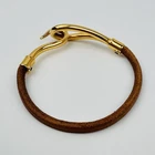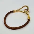 Hermes Brown Leather Gold Logo Hook Bracelet Excellent Used No Box Key Features HERMES Brown Leather and Gold Hook Bracelet. Elegant vintage design with a secure hook clasp. Made from high-quality leather and metal, featuring a classic brown and gold color scheme. Comes with original box. Used, in excellent condition with minor signs of wear. Perfect for everyday or special occasions. Item specifics: - C:Style: Bracelet - C:Type: Hook Bracelet - C:Color: Brown/Gold - C:Main Stone Color: N/A - C:Material: Leather/Metal - C:Metal: Gold-tone - C:Main Stone: N/A - C:Secondary Stone: N/A - C:Charm Type: N/A - C:Shape: N/A - C:Main Stone Shape: N/A - C:Number of Gemstones: N/A - C:Theme: Luxury - C:Country of Origin: France - C:Main Stone Creation: N/A - C:Setting Style Specifications Brand HERMES Country Japan Product Description Item Title Hermes Brown Leather Gold Hook Bracelet Logo Payment Supports managed payments Please pay within 5 days after auction is finished. About Us We are located in Japan. It's our pleasure to make you happy by proposing our recommend item. If you have any questions or request about items, please feel free to ask us. International Buyers - Please Note: -Import duties, taxes, and charges are not included in the item price or shipping charges. These charges are the buyer's responsibility. -Please check with your country's customs office to determine what these additional costs will be prior to bidding/buying. -These charges are normally collected by the delivering freight (shipping) company or when you pick the item up - do not confuse them for additional shipping charges. -We do not mark merchandise values below value or mark items as - gifts - The US and International government regulations prohibit such behavior. Thank you for your understanding.