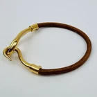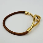 $ 364.32Hermes Atame Gold Leather Bracelet 20cm Brown Pre-Owned No Box