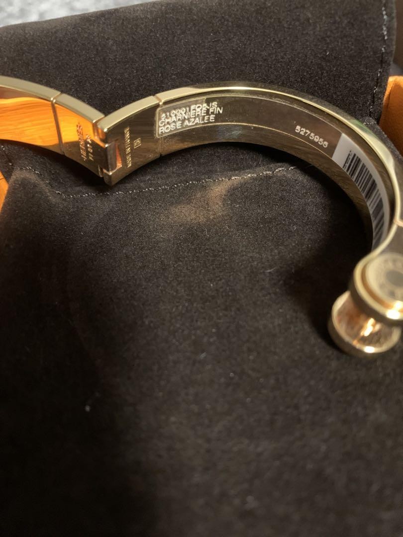 Hermes Charnière PM Bangle Pink Excellent Used No Box 2x Short Wear Key Features Elevate your style with this authentic HERMES accessory, featuring a beautiful pink color. Purchased from the Fukuoka Iwataya HERMES store, this item has been lightly used, with only two short-term uses. It remains in excellent condition with no noticeable scratches or stains, making it a great addition to your collection. Comes with original box for added authenticity. Perfect for any occasion, this pre-owned piece offers a touch of luxury and elegance. Please feel free to ask any questions. Item Specifics: - Brand: HERMES - Color: Pink - Material: Not specified - Main Stone Color: Not specified - Metal: Not specified - Main Stone: Not specified - Secondary Stone: Not specified - Charm Type: Not specified - Shape: Not specified - Main Stone Shape: Not specified - Number of Gemstones: Not specified - Theme: Not specified - Country of Origin: France (assumed from brand) - Main Specifications Brand HERMES Country Japan Product Description Item Title Hermes Charnière Pm Bangle Pink Payment Supports managed payments Please pay within 5 days after auction is finished. About Us We are located in Japan. It's our pleasure to make you happy by proposing our recommend item. If you have any questions or request about items, please feel free to ask us. International Buyers - Please Note: -Import duties, taxes, and charges are not included in the item price or shipping charges. These charges are the buyer's responsibility. -Please check with your country's customs office to determine what these additional costs will be prior to bidding/buying. -These charges are normally collected by the delivering freight (shipping) company or when you pick the item up - do not confuse them for additional shipping charges. -We do not mark merchandise values below value or mark items as - gifts - The US and International government regulations prohibit such behavior. Thank you for your understanding.