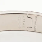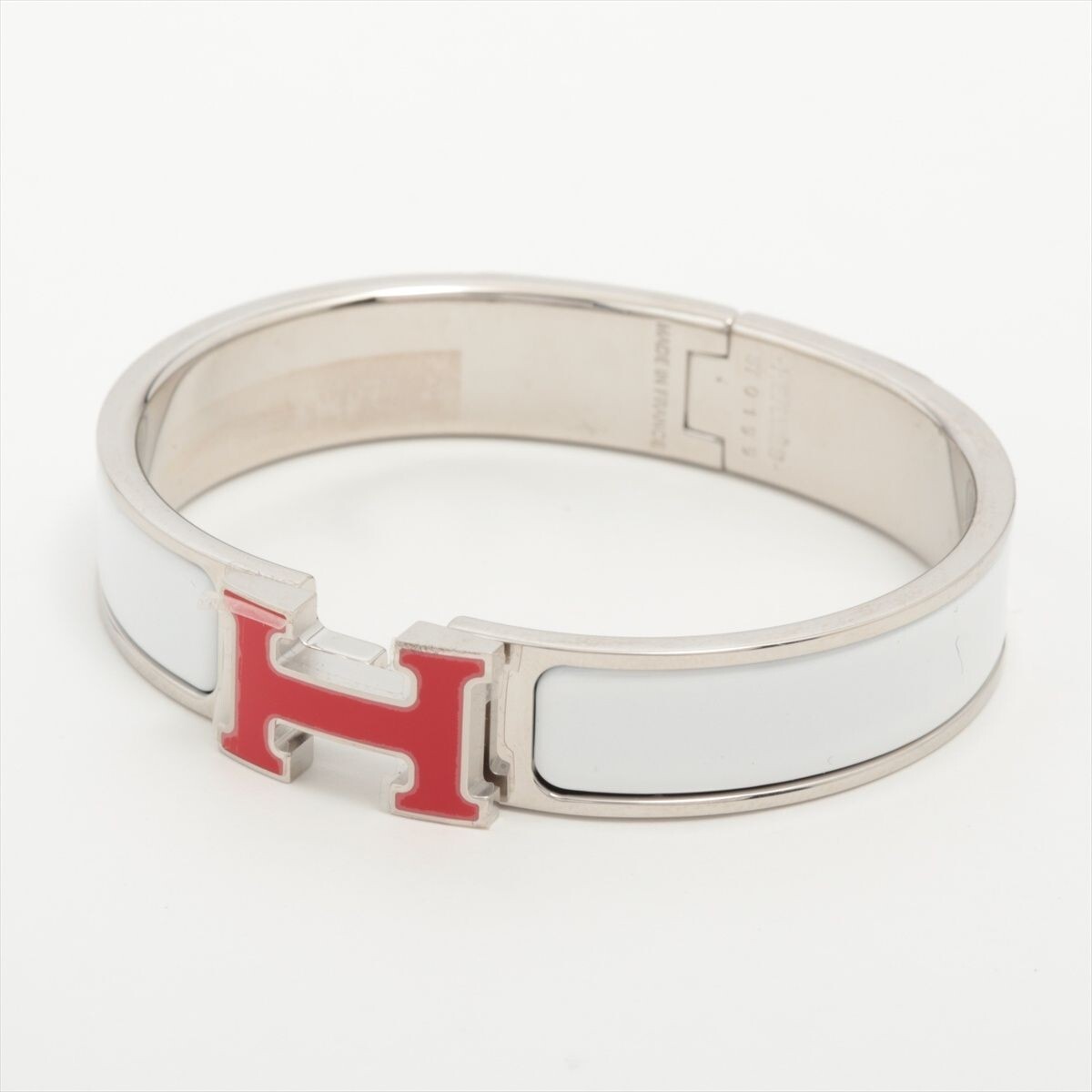 Hermes Click Clack H Logo PM Bangle Silver White Red Metal Description Condition: used Excellent condition. Size: Arm circumference (inner dimension) 15.5cm, width 1.2cm, thickness 0.2cm, inner diameter 5.5cm *The size is the actual size measured flat at our store. It may differ from the size on the tag. Accessories: None The protective sticker is still attached to the outer metal parts. There is some dullness on the inner plating, but it is not noticeable. There are no other issues of concern. All my products are 100% Authentic. Please feel free to contact us if you have any question. Please check the picture. Payment Please pay within 5 days after the auction closed. Shipping About other area, please ask me. When you purchase two or more my items, I can send them together and discount shipping cost. Returns Returns are accepted ONLY if the item was not the item described. International Buyers - Please Note: * Import duties, taxes and charges are not included in the item price or shipping charges. These charges are the buyer's responsibility. * Please check with your country's customs office to determine what these additional costs will be prior to bidding/buying. * These charges are normally collected by the delivering freight (shipping) company or when you pick the item up - do not confuse them for additional shipping charges. * We do not mark merchandise values below value or mark items as "gifts" - US and International government regulations prohibit such behavior. Important Notice For U.S. Buyers For shipments to the US: Import duties and taxes are already included in the item price, so there will be no additional charges upon delivery. Note: For items valued over $2,500 USD, a formal entry may be required by U.S. Customs, and duties and/or taxes may apply, which must be paid by the buyer, even for shipments to the United States. For Buyers Outside the US: Import duties, taxes, and charges are not included in the item price or shipping cost. These fees are the buyer's responsibility. Please check with your country's customs office to determine what these additional costs may be prior to bidding or purchasing. These import-related payments are the buyer's responsibility in accordance with eBay's Terms and Conditions.