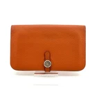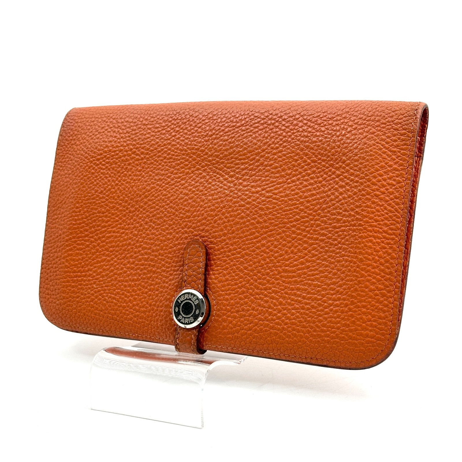 $ 330.0HERMES Dogon Long Bifold purse wallet D Evercolor leather Orange Used Women SHW