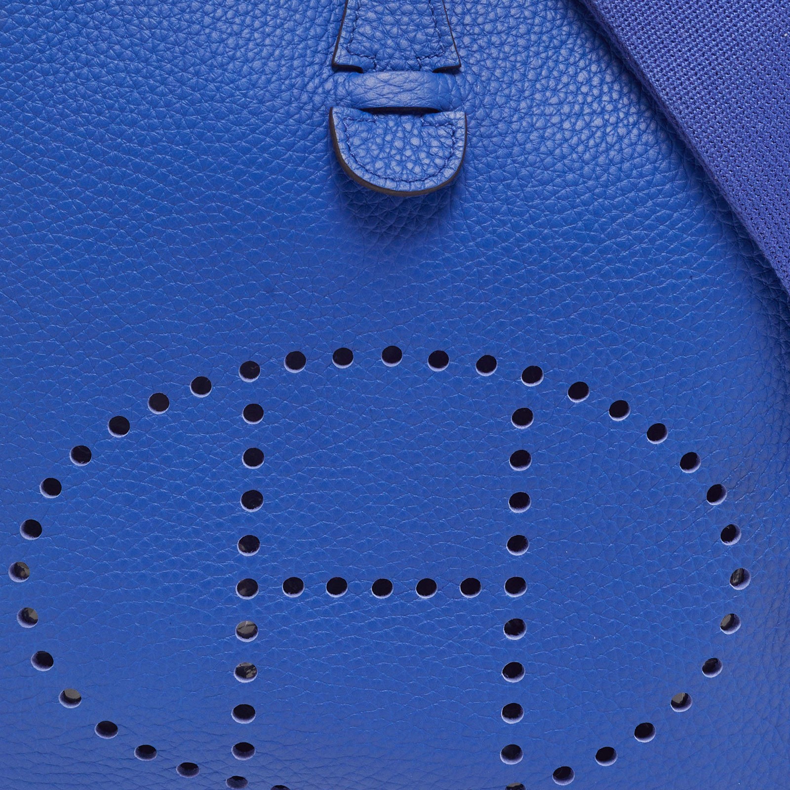 Our eBay Store About Us Contact Us Add to Favorite Sellers Hermes Evelyne III PM Bleu Electrique Taurillon Clemence Leather Shoulder Bag Marked by its vivid Bleu Electrique shade, the Hermès Evelyne III PM is crafted from grained Taurillon Clemence leather with a naturally soft drape. The perforated H adds a graphic signature, balanced by a wide canvas strap designed for crossbody or shoulder wear. Product Details Brand Hermes Includes Original Dustbag Certified by The Luxury Closet This item has gone through a detailed authentication process overseen by our experts. We offer a lifetime guarantee of authenticity on all our items. How We Check The in-house team of experts at The Luxury Closet is highly trained to verify the authenticity and the condition of the luxury products. They ensure that only 100% authentic items are put on sale.The evaluation process is unique with its own mix of assessment criteria and differs according to the category. Each item is evaluated based on the following combination of hallmarks, hardware, stitching, symmetry, material, craftsmanship, stamping, codes, hologram stickers, and packaging. Our authenticators also check if the items have been modified or amended (e.g., aftermarket diamonds, replaced batteries, repaired bags, etc.) Please note that this handbag may have a perfume scent, as it was stored and packaged in Dubai where such fragrances are commonly used. International Buyers Import duties, taxes and charges are not included in the item price. These charges are the buyers responsibility. Please check with your country’s customs office to determine what these additional cost will be prior to buying.