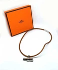Hermes Green Leather Choker Necklace and Silver Bracelet Set for Women