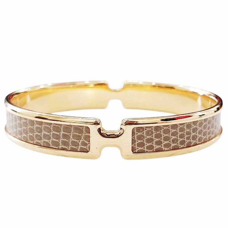 Hermes HERMES Oran Lizard Bracelet Bangle Brown Gold Color 0719 Women s
