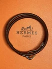 This Hermes double-layer choker and bracelet set is a stunning statement piece! The silver and dark brown leather combo gives it a luxurious yet edgy vibe. Perfect for layering or wearing solo, it adds instant elegance to any outfit. Despite being pre-owned, it’s in excellent condition—minor wear just adds character. Love the versatility—works for both men and women. A must-have for Hermes fans!