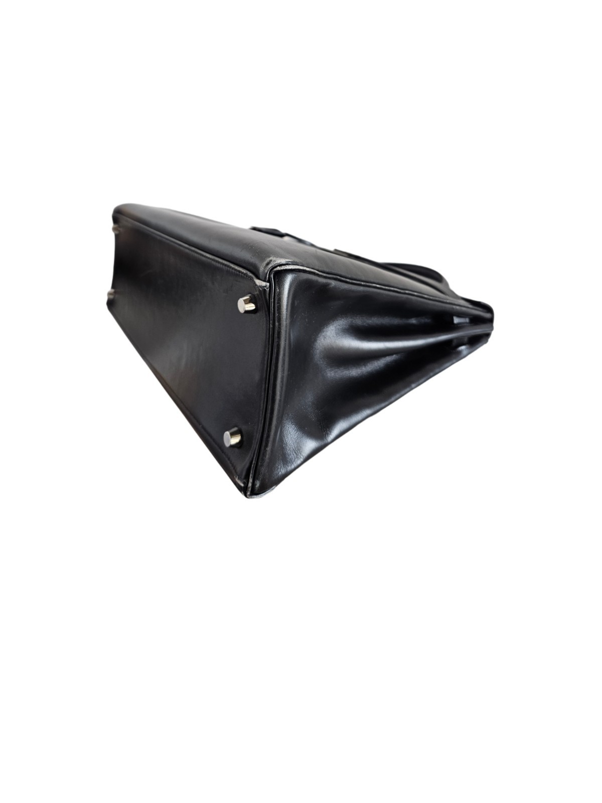 Hermes Kelly 35 Box Leather Palladium Hardware Bag Stamp N in a square (2010 Attributes Material: Box Leather Color: Black Size: 35 Condition Desc.: Good condition, has scuffed on the corners & scratches Inclusions: Strap, lock & key H: 25 cm L: 35 cm W: 12 cm