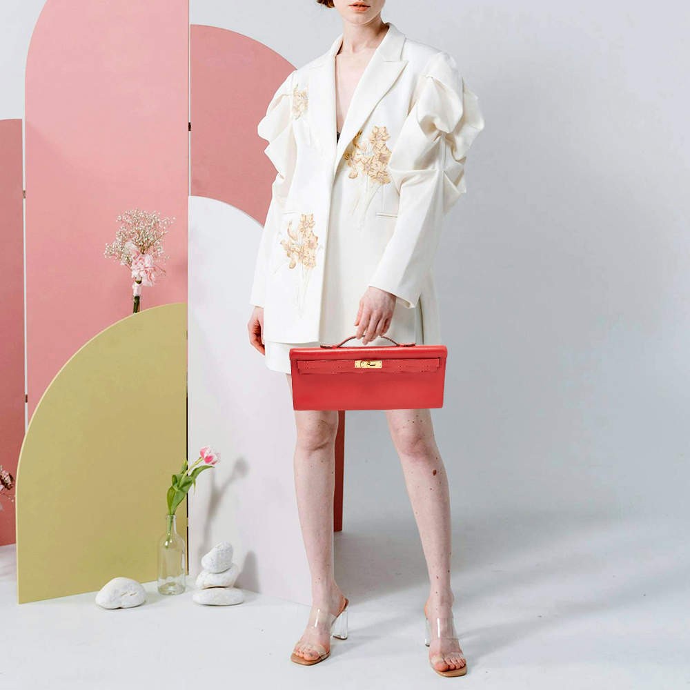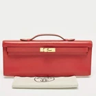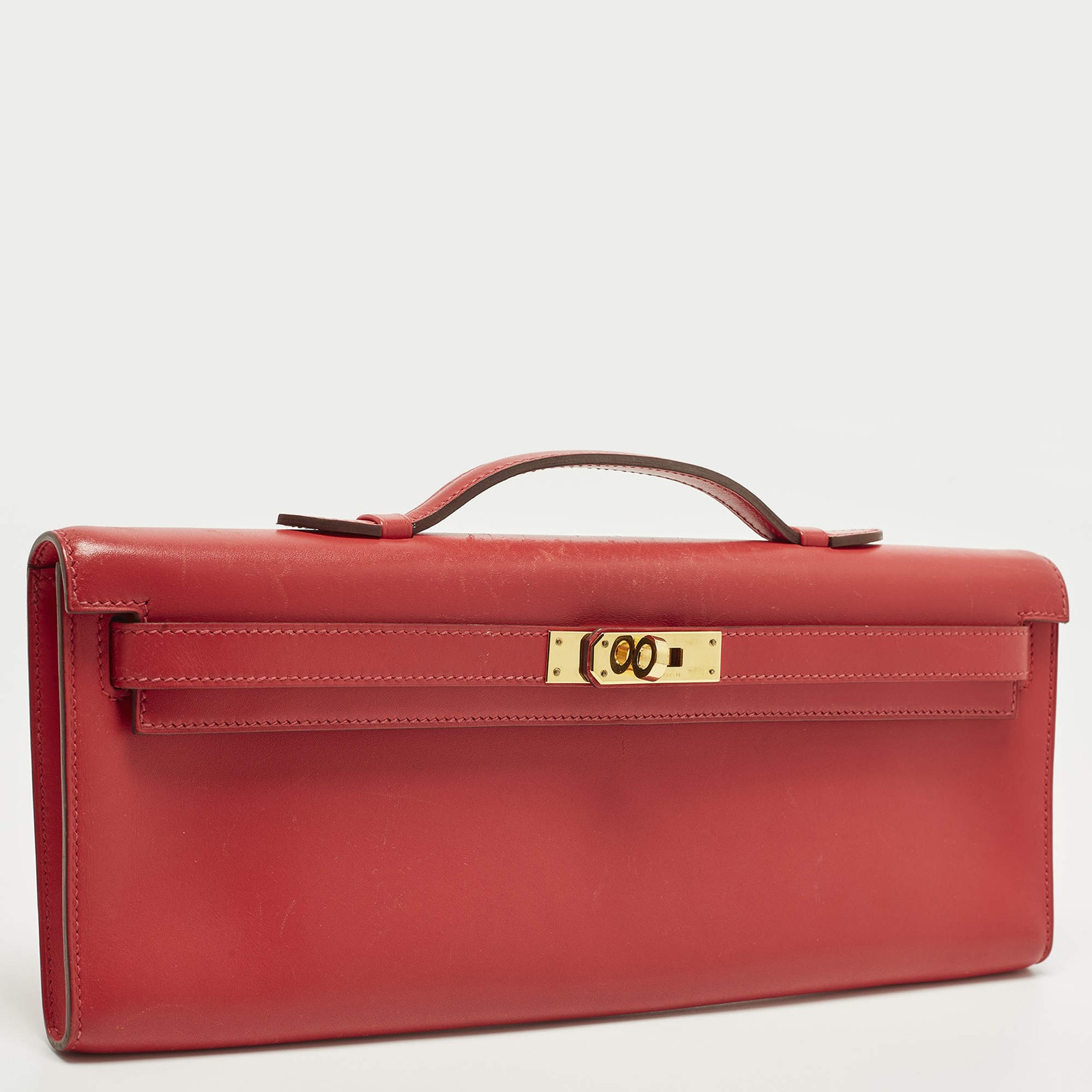 Our eBay Store About Us Contact Us Add to Favorite Sellers Hermes Kelly Cut Gold Finish Rouge Vif Tadelakt Leather Clutch A collector’s classic, the Hermès Kelly Cut in Rouge Vif holds strong appeal for those drawn to the house’s most iconic forms. The slim clutch shape carries essentials for formal settings and special occasions. Finished with gold hardware, it reflects Hermès craftsmanship in a format that feels refined and intentional. Product Details Brand Hermes Includes Original Dustbag Certified by The Luxury Closet This item has gone through a detailed authentication process overseen by our experts. We offer a lifetime guarantee of authenticity on all our items. How We Check The in-house team of experts at The Luxury Closet is highly trained to verify the authenticity and the condition of the luxury products. They ensure that only 100% authentic items are put on sale.The evaluation process is unique with its own mix of assessment criteria and differs according to the category. Each item is evaluated based on the following combination of hallmarks, hardware, stitching, symmetry, material, craftsmanship, stamping, codes, hologram stickers, and packaging. Our authenticators also check if the items have been modified or amended (e.g., aftermarket diamonds, replaced batteries, repaired bags, etc.) Please note that this handbag may have a perfume scent, as it was stored and packaged in Dubai where such fragrances are commonly used. International Buyers Import duties, taxes and charges are not included in the item price. These charges are the buyers responsibility. Please check with your country’s customs office to determine what these additional cost will be prior to buying.