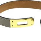 Dear customers, thank you for taking a look at the item. All the items from my shop are authentic. Condition Description This is pre-owned item. The condition is very good. No major damage is found but there may be some used marks or scratches. Please see the pictures. Should you have any quesion, please feel free to ask. Description & Condition Basic information [Brand name]: Hermes [Line name]: Kelly [Model]: Double Tour [Country of manufacture]: France Design [Type]: Bangle [Style]: Casual [Gender]: Women's, Men's [Material]: Gold plate, leather [Leather/fur type]: Box calf [Color]: Grey [Opening]: Turn lock Size [Listed size]: T3 [Size (length)]: 15.5cm / 6.1'' [Size (width)]: 13.4cm / 5.27'' [Weight]: 18.6g / 0.65oz. [Total length]: 37cm / 14.56'' Individual product information [Serial number]: A FS 006 GX Accessories [Accessories]: None Condition [Condition]: Good [Rank]: Rank AB [Used] Slightly used, with scratches and dirt, but overall in good condition [Overall scratches]: Minor [Overall signs of use]: Minor Shipping [Total weight]: 18.6g / 0.65oz. Please be reminded that due lighting effects, monitor's brightness/contrast settings etc, there could be some slight differences in the colour tone of the website's photo and the actual item. Item. Measured by hand, it could be 1cm different (1cm=0.39 inch), your kind understanding will be much appreciated. ※Please feel free to contact us if you have any question. Policy Shipping Free shipping! We will ship to worldwide by FedEx or EMS (Insured, Trackable, Including handling cost.) or other shipping services. FedEx takes 3-7 days, including with insurance & a tracking number. EMS takes 4~7 days, includes with insurance & a tracking number. EMS (Express Mail Service) is international mailing service by Japan Post Office. We will ship your item within 3-5 business days, after your payment. We can ship ONLY to your eBay address. To International Buyers Import duties, taxes and charges are not included in the item price or shipping charges. These charges are the buyer’s responsibility. Please check with your country’s customs office to determine what these additional costs will be prior to bidding/buying. These charges are normally collected by the delivering freight (shipping) company or when you pick the item up do not confuse them for additional shipping charges. We do not mark merchandise values below value or mark items as "gifts" - US and International government regulations prohibit such behavior. Cancellations & Returns * Defective Returns We will gladly replace any defective unit at no additional cost yo you within 30 days of purchase, pending availability of the product. Should the product be out of stock we will refund your PayPal account in full. Please contact us directly though eBay messaging for information on returning your defective item and receiving a replacement or refund. * Non-Defective Returns: We will offer you a full refund for items unused and in resalable condition within 30 days. Buyer is responsible for the return shipping costs on non defective items. Once item is inspected, a full refund of the purchase price will be credited back to your PayPal account. * Buyers are required to take photos on the damaged item and send the item back within 30 days after item received, Return must be shipped to ensure safety. * Orders may not be cancelled at any time nor can addresses be changed once checkout is complete. It is the buyers responsibility to make sure all information is up to date before checkout. * If you are not satisfied with the product or service, please contact us first and don't give us negative or natural feedback. We give you a satisfactory solution. Payment Please make a payment within 3 days after send my invoice. No payment confirmed within 5 business days after purchase, the order will be canceled.