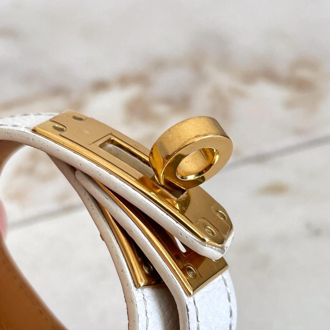 Hermes Kelly Bracelet Leather White Brown Gold Acc Excellent Used No Box Key Features Elevate your style with this authentic HERMES Kelly Bracelet in Epsom leather. Featuring a sophisticated white and brown color scheme with gold-tone hardware, this bracelet is crafted from genuine leather and metal. The size is approximately 36.5cm in length and 1.3cm in width, fitting comfortably as an S size. The bracelet includes original packaging, box, and pouch, and is in excellent condition with minor signs of use on the hardware. Made in France, it bears the A stamp, confirming its authenticity. Perfect for gifting or personal use, this handmade, Sizable accessory adds a touch of luxury to any outfit. Item Specifics: - C:Style: Bracelet - C:Type: Leather Bracelet - C:Color: White/Brown - C:Main Stone Color: N/A - C:Material: Leather/Metal - C:Metal: Gold-tone - C:Main Stone: N/A - C:Secondary Stone: N Specifications Brand HERMES Country Japan Product Description Item Title 5055 Hermes Epson Kelly Bracelet Leather Genuine Payment Supports managed payments Please pay within 5 days after auction is finished. About Us We are located in Japan. It's our pleasure to make you happy by proposing our recommend item. If you have any questions or request about items, please feel free to ask us. International Buyers - Please Note: -Import duties, taxes, and charges are not included in the item price or shipping charges. These charges are the buyer's responsibility. -Please check with your country's customs office to determine what these additional costs will be prior to bidding/buying. -These charges are normally collected by the delivering freight (shipping) company or when you pick the item up - do not confuse them for additional shipping charges. -We do not mark merchandise values below value or mark items as - gifts - The US and International government regulations prohibit such behavior. Thank you for your understanding.