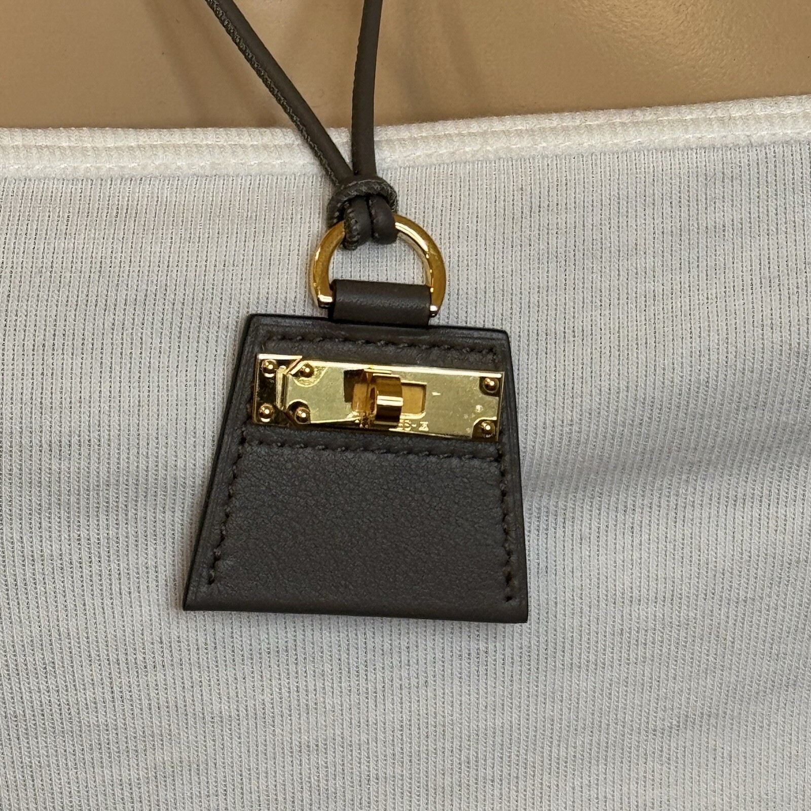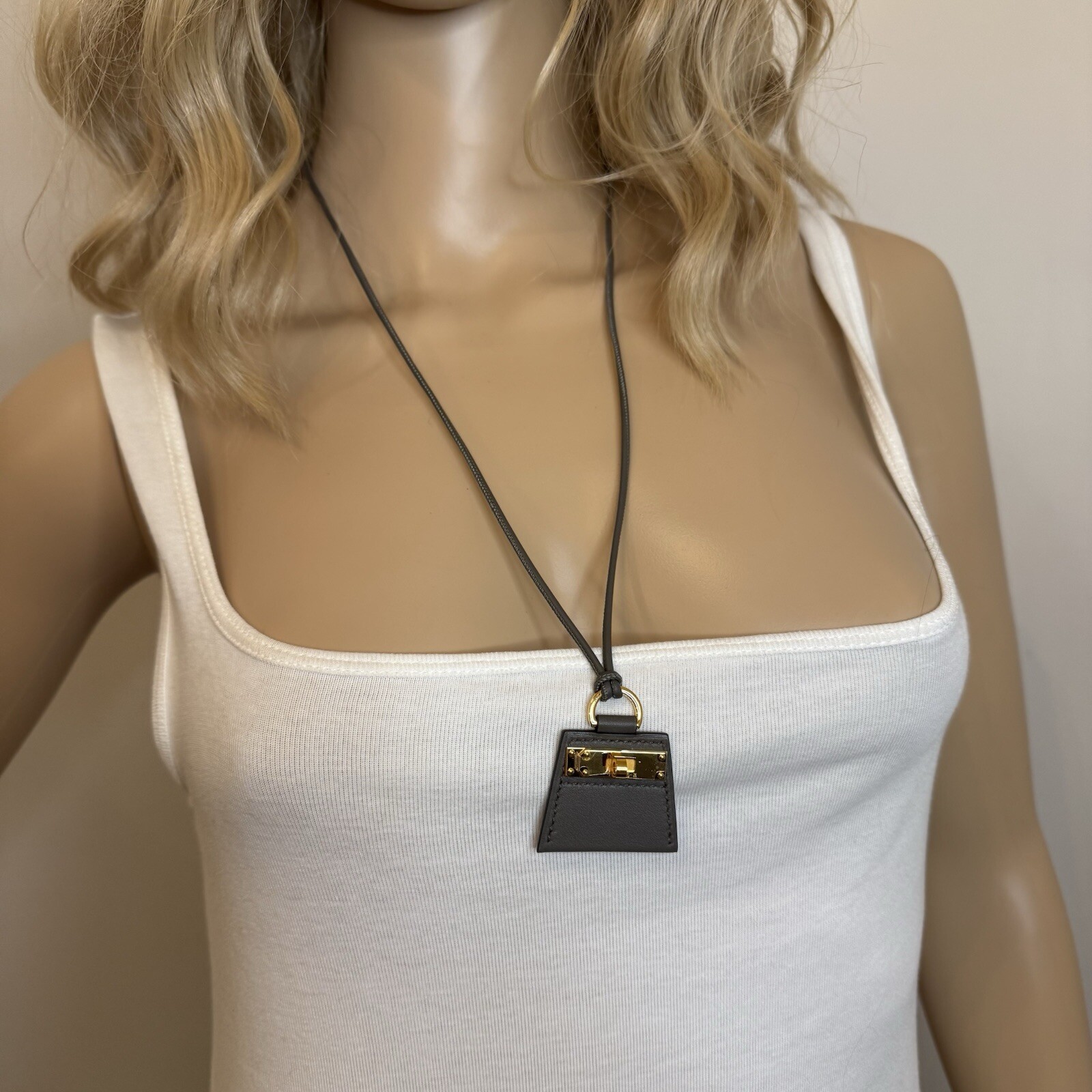 Title: Hermes Kelly Turnlock Pendant Necklace - Black Leather, Gold Hardware, Authentic, Boxed Description: Discover an authentic Hermes Kelly Turnlock Pendant Necklace, a luxurious and timeless accessory. This exquisite piece features: • Material: Smooth black leather strap with signature gold-tone hardware, including a turnlock closure still protected by its original plastic. • Design: Inspired by the iconic Kelly bag lock, this pendant is a highly sought-after collector’s item, both stylish and functional. • Origin: Stamped “Hermes Paris” and “Made in France,” reflecting the exceptional craftsmanship of the era. • Condition: Excellent pre-owned condition with minimal wear; includes the original Hermes orange box for safekeeping. Era & Collectability: This piece exudes elegance from the modern Hermes design catalog. Perfect for collectors or those seeking to add a refined touch to any outfit. A wearable piece of history from a world-renowned fashion house. Measurements: • Pendant Dimensions: Approximately 1.5” x 1.5” • Necklace Length: 22’’ Why Choose This Piece: This Hermes Kelly necklace combines luxury and versatility, making it a perfect gift or addition to your collection. Its timeless design will remain a staple for years to come. Additional Details: I ship within 24 hours of payment (excluding weekends and holidays). Combine shipping when purchasing two or more items! Check out my shop Vintage Wowzers for more unique treasures. Thank you for shopping with Vintage Wowzers! Have a wonderful day! JAN50JOD