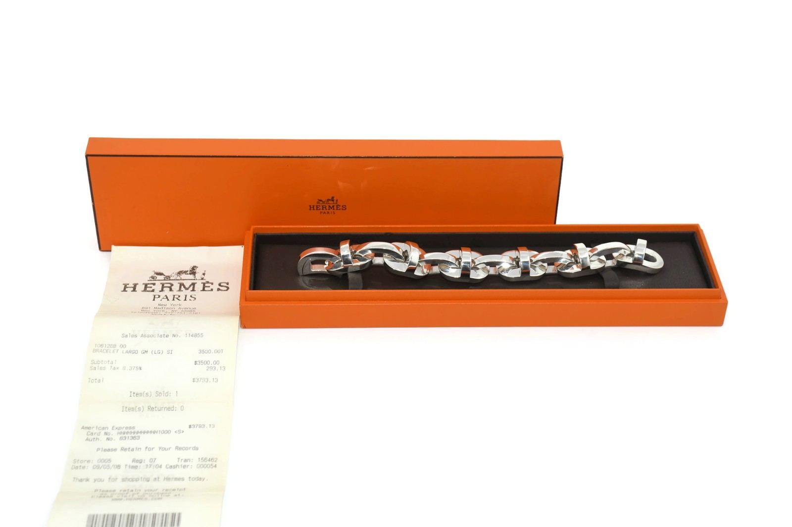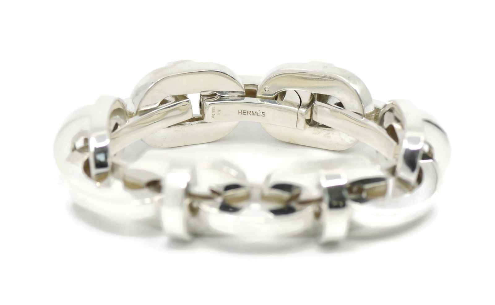 HERMES LARGO GM STERLING SILVER BRACELET LENGTH:8 INCHES WEIGHT:162 GRAMS WIDTH:20MM SKU:12-25/10-10 COMES WITH PURCHASE RECEIPT 100% AUTHENTIC WITH BOX Recommended products Provided by Hermes Acrobate GM Sterling Silver Bracelet View product Hermes Horace GM Sterling Silver Bracelet View product Hermes Neptune GM Sterling Silver Bracelet View product Hermes Alea GM Patine Sterling Silver Bracelet View product Hermes Alea GM Patine Sterling Silver Bracelet View product Hermes Crescendo Patine Sterling Silver Bracelet View product Hermes Chaine d'Ancre Sterling Silver Bracelet View product Gucci Sterling Silver Bracelet View product