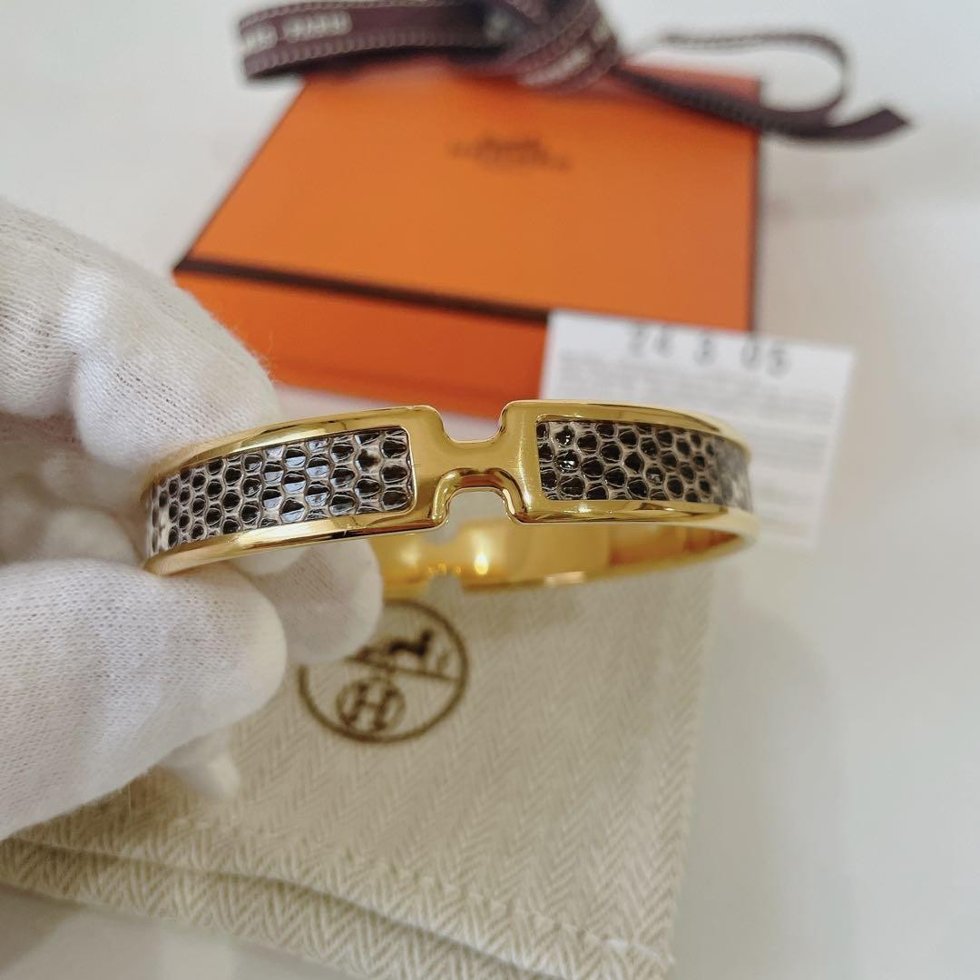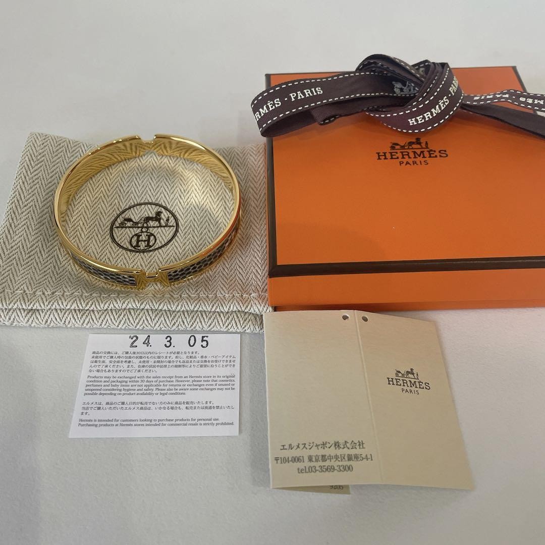 Hermes Oramp Lizard Bangle Yellow Gold Excellent Used No Box 6-8 uses Key Features Elevate your style with this authentic HERMES Oran bracelet in stunning yellow gold with a lizard strap. Purchased from Yokohama Takashimaya on March 5, 2024, for ¥107,800. Used lightly, with only 6-8 wears, it shows minor, barely visible scratches. Comes with original box, cloth case, and ribbon; Hermes shopping bag not included but available for ¥250. Perfect for all seasons—wear it over coats or sweaters. Made in Japan, genuine, and purchased from an authorized store. Please note, due to anti-tampering policies, returns are not accepted. This item is not related to any third-party listings using the same images. Buy with confidence from a trusted seller. Item Specifics: - C:Style: Bangle - C:Type: Bracelet - C:Color: Yellow Gold - C:Main Stone Color: N/A - C:Material: Lizard Leather - C Specifications Brand HERMES Country Japan Product Description Item Title Under Half Price Hermes Oramp Lizard Bangle Payment Supports managed payments Please pay within 5 days after auction is finished. About Us We are located in Japan. It's our pleasure to make you happy by proposing our recommend item. If you have any questions or request about items, please feel free to ask us. International Buyers - Please Note: -Import duties, taxes, and charges are not included in the item price or shipping charges. These charges are the buyer's responsibility. -Please check with your country's customs office to determine what these additional costs will be prior to bidding/buying. -These charges are normally collected by the delivering freight (shipping) company or when you pick the item up - do not confuse them for additional shipping charges. -We do not mark merchandise values below value or mark items as - gifts - The US and International government regulations prohibit such behavior. Thank you for your understanding.