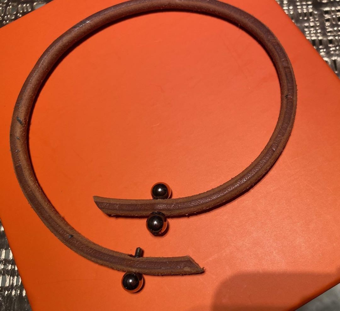 Hermes Roulette Hill Leather Necklace Excellent Used No Box Green 16" Auth Key Features Elevate your style with this Hermes leather choker, featuring three charming silver metal balls as accents. The central ball has a unique screw mechanism for easy wear and removal. This exclusive design combines Hermes' signature elegance with a casual vibe, perfect for summer accessories. Made from lightweight leather, it offers comfortable wear despite its substantial appearance. Length: 41cm; wrist circumference: approximately 16cm. Crafted from genuine leather and metal, with some minor signs of use that add character. No logo on the main body. Comes without a box. Ideal for casual or chic occasions. Item Specifics: C:Style: Choker C:Type: Leather Necklace C:Color: Brown C:Main Stone Color: N/A C:Material: Leather, Metal C:Metal: Silver-tone C:Main Stone: N/A C:Secondary Stone: N/A C:Charm Type: Metal Balls C:Shape: Round C:Main Stone Shape: Specifications Brand HERMES Country Japan Product Description Item Title Hermes Roulette Hill Leather Necklace With Gift Box Payment Supports managed payments Please pay within 5 days after auction is finished. About Us We are located in Japan. It's our pleasure to make you happy by proposing our recommend item. If you have any questions or request about items, please feel free to ask us. International Buyers - Please Note: -Import duties, taxes, and charges are not included in the item price or shipping charges. These charges are the buyer's responsibility. -Please check with your country's customs office to determine what these additional costs will be prior to bidding/buying. -These charges are normally collected by the delivering freight (shipping) company or when you pick the item up - do not confuse them for additional shipping charges. -We do not mark merchandise values below value or mark items as - gifts - The US and International government regulations prohibit such behavior. Thank you for your understanding.