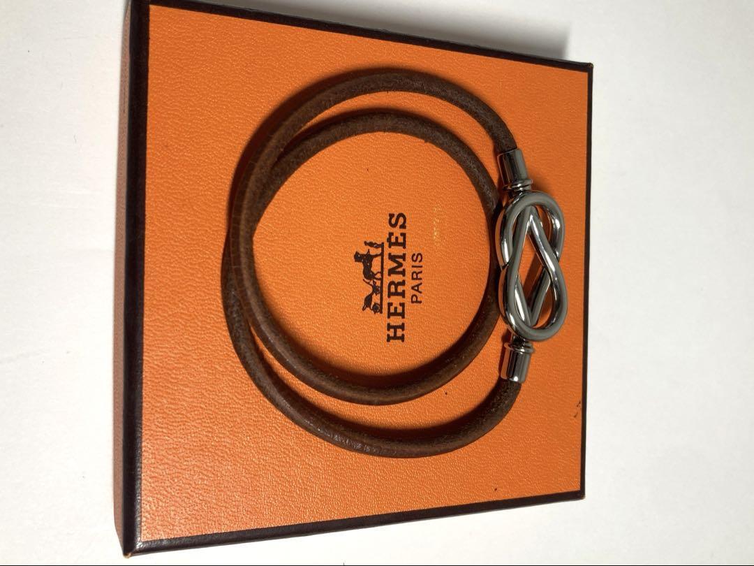 Item Title Hermes Silver Hardware Leather Double Bracelet With Box From Japan Payment Supports managed payments Please pay within 5 days after auction is finished. About Us We are located in Japan. It's our pleasure to make you happy by proposing our recommend item. If you have any questions or request about items, please feel free to ask us. International Buyers - Please Note: -Import duties, taxes, and charges are not included in the item price or shipping charges. These charges are the buyer's responsibility. -Please check with your country's customs office to determine what these additional costs will be prior to bidding/buying. -These charges are normally collected by the delivering freight (shipping) company or when you pick the item up - do not confuse them for additional shipping charges. -We do not mark merchandise values below value or mark items as - gifts - The US and International government regulations prohibit such behavior. Thank you for your understanding.