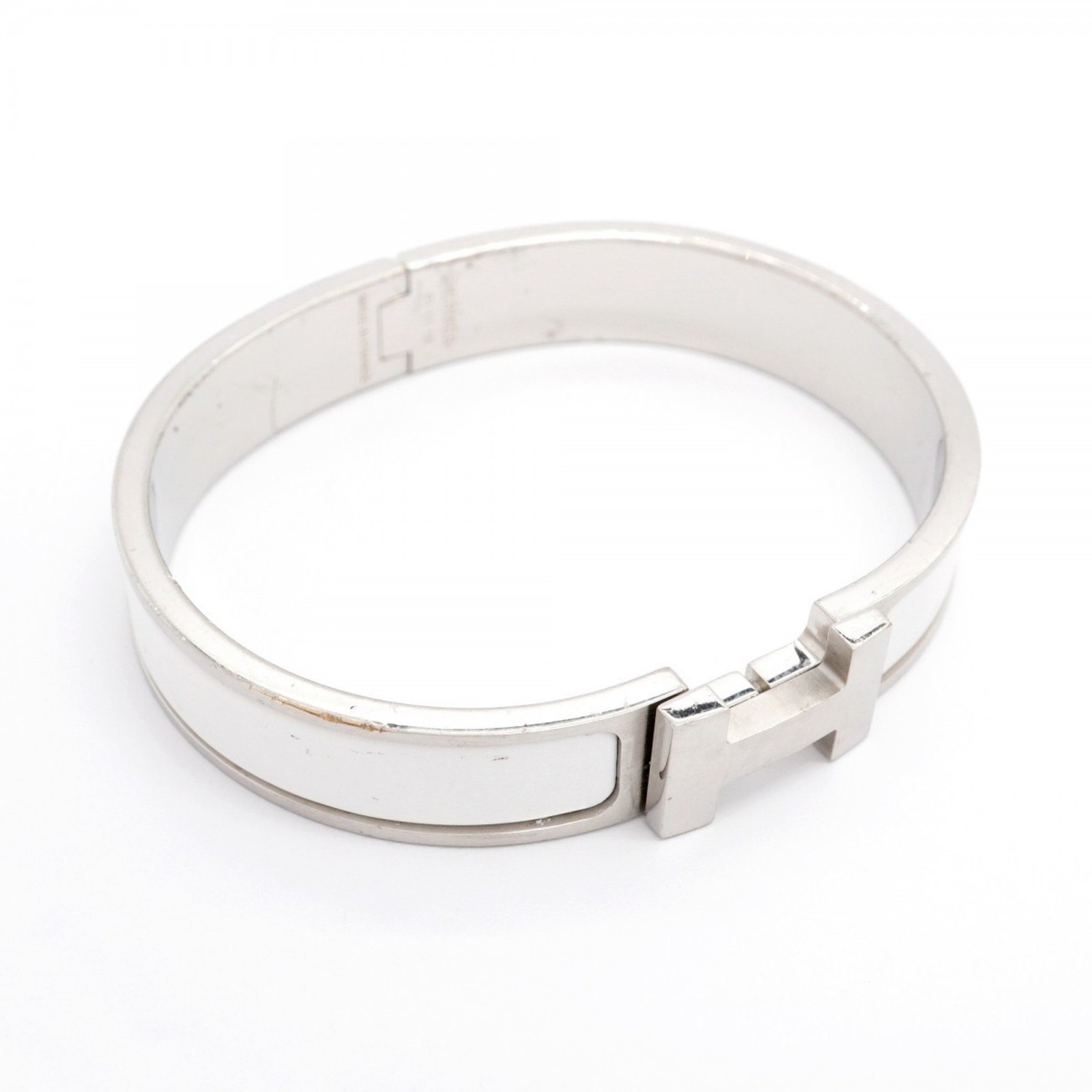 This Hermes bangle is absolutely stunning! The sleek silver and white metal design gives it a luxurious yet elegant look. Despite being pre-owned, it's in great condition with only minor signs of wear. The 18cm length fits comfortably, and the Click Clack design adds a fun, stylish touch. Perfect for elevating any outfit—definitely a must-have for Hermes lovers!