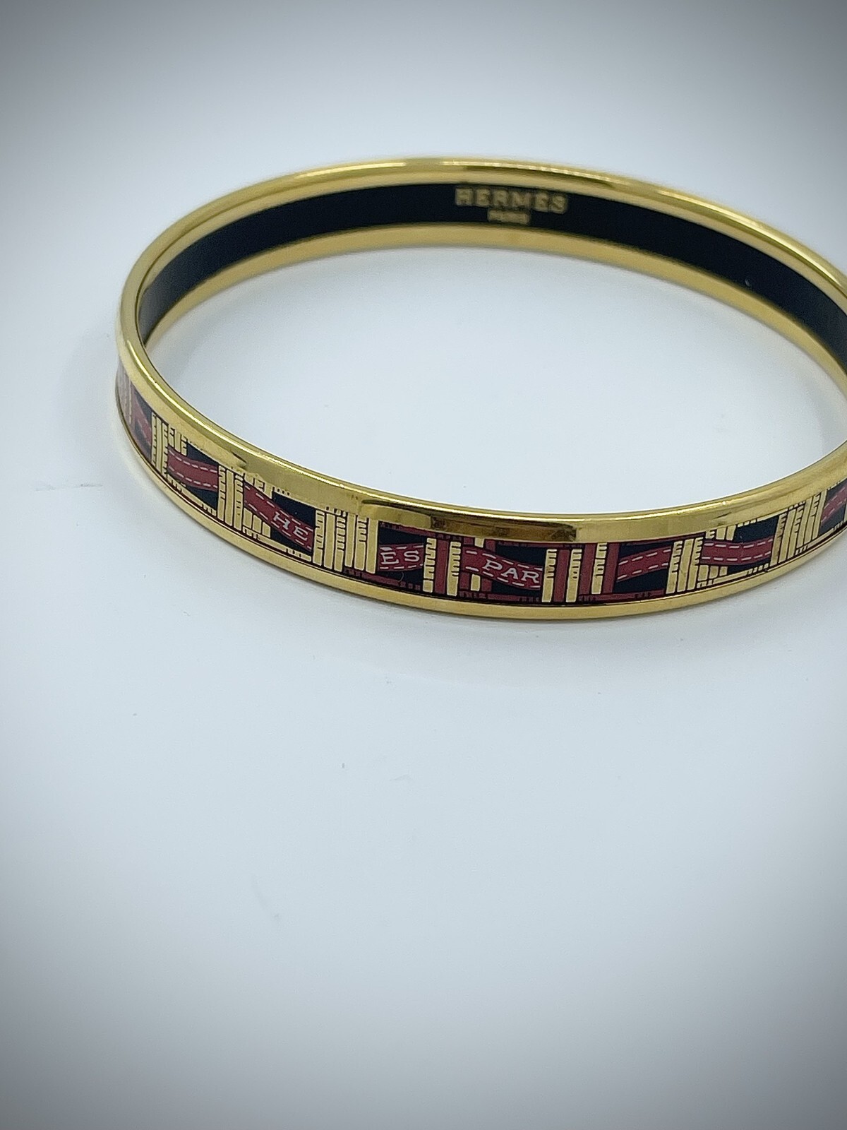 Experience the elegance of Hermes with this exquisite enamel bangle bracelet. A signature piece from the esteemed fashion house, it exudes sophistication with its sleek design and impeccable craftsmanship. The bracelet's durable enamel surface is both visually stunning and resistant to the wear and tear of everyday use, ensuring that it remains a timeless accessory for any wardrobe. The bracelet's charm lies in its simplicity, making it a versatile addition to both casual and formal attire. Its stylish bangle silhouette ensures a comfortable fit while providing a touch of luxury to any outfit. Whether as a gift or a personal indulgence, this Hermes enamel bracelet is an understated yet elegant choice for anyone with a penchant for high-end fashion.