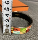 Hermes Bangle Bracelet multi-color with Box Description Condition: Pre-owned The bangle itself is in very good condition with no noticeable stains or scratches. lease note that the box has a black stain near the HERMES logo. There are also some minor stains on the lid and inside of the box. Please refer to the photos for more details. Brand: HERMES Color: Multicolor Material: Enamel Size: Approx. 6.5 cm in diameter Design: Chaine d'Ancre chain motif Shipping Expedited Shipping (FedEX, DHL or EMS) Will be shipped within 10 business days once receive payment. We always send the item with a tracking number. So please place an order without any concern on delivery. You can always track the delivery status. Shipping is only available to the address registered in eBay. If you want us to send another address, please change your address on eBay and then place an order. Shipping is available from Monday to Friday. Weekends are not available because freight (shipping) companies are closed. Returns Returns are accepted ONLY if the item was not the item described. International Buyer: Please Note! Import duties, taxes and charges are not included in the item price or shipping charges. These charges are the buyer's responsibility. Please check with your country's customs office to determine what these additional costs will be prior to bidding/buying. These charges are normally collected by the delivering freight (shipping) company or when you pick the item up - do not confuse them for additional shipping charges. We do not mark merchandise values below value or mark items as "gifts" - US and International government regulations prohibit such behavior. It is also sold on other sites. If it sells first, it may run out of stock. Please understand.