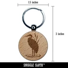 Heron Bird Silhouette Engraved Wood Round Keychain Tag Charm