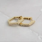 Elevate Your Style with Stunning Geometric Gold or Silver Hoop Earrings Make a striking statement with these elegant geometric hoop earrings, featuring a sleek gold or silver plated hexagon design adorned with dazzling diamonds. Their minimalist yet sophisticated style ensures effortless versatility, seamlessly complementing any outfit from casual to formal. Expertly crafted from high-quality materials, these earrings promise both timeless beauty and durability. Perfect for gifting on birthdays, anniversaries, or just because, these earrings are a meaningful choice for the special woman in your life. Embrace modern elegance with these must-have hoops, blending contemporary design with timeless charm. Upgrade your jewellery collection with these eye-catching accessories today!