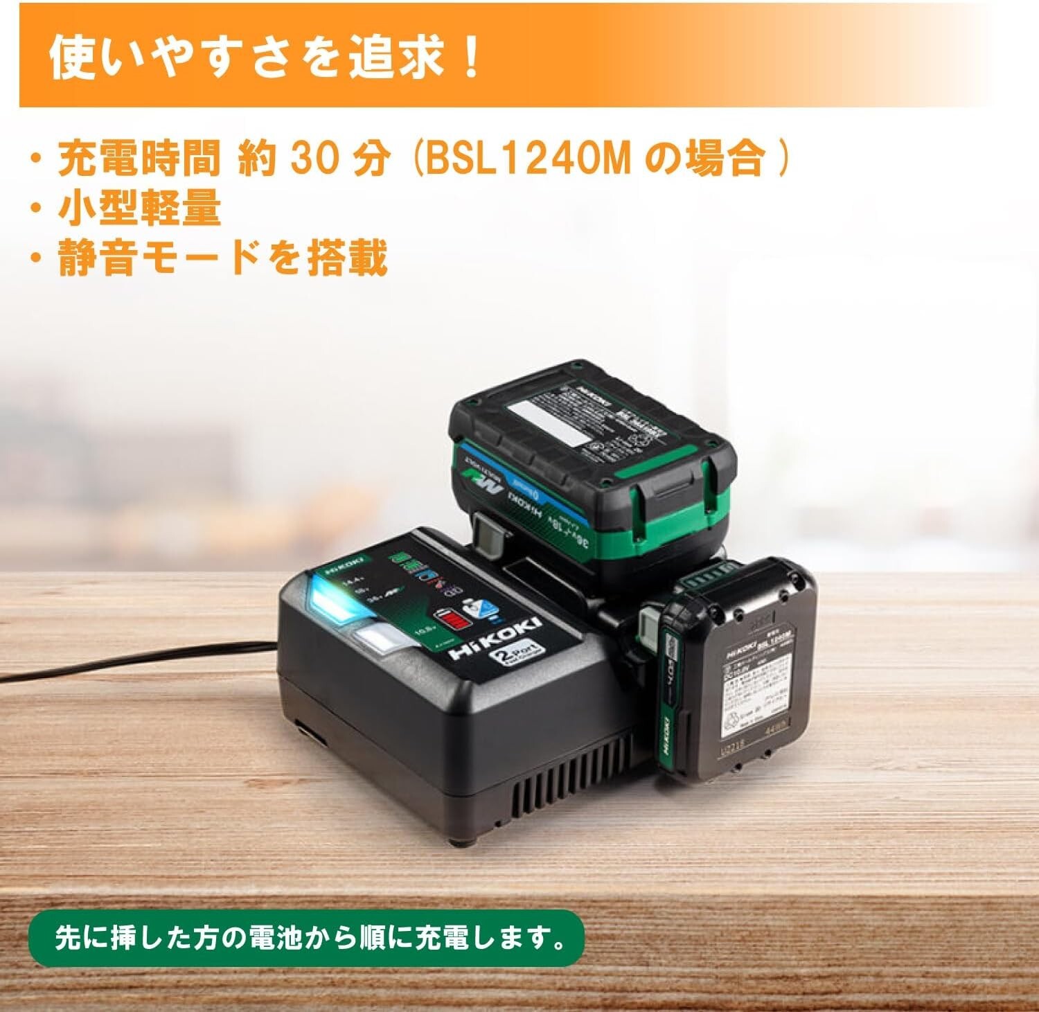 ■■■Product■■■ HiKOKI Starter Kit 2-port Charger, 2 10.8V Battery, System Case , UC18YDML (2L) 【condition】: NEW Product Description A great value set that comes with 2 10.8V batteries (BSL1240M) and System Case 2 as standard accessories ●You only need one charger. In addition to 36V (multi-volt batteries), 18V, and 14.4V, a new quick charger that can charge 10.8V batteries has been released. The same size as the conventional charger (UC18YDL2), but with the addition of a 10.8V port, there are now two ports. *The battery inserted first will be charged first. ●Fast charging speed Charging takes half the time of the conventional 10.8V charger (UC12SL), greatly improving charging efficiency. (For BSL1240M: Can be charged in about 30 minutes) ●Quiet mode There is no buzzer or cooling fan noise, so you can charge comfortably even while taking a break or sleeping. *Charging time will be longer in silent mode. ●USB port: Type-A compatible You can charge your smartphone from a battery even without an outlet *Power cannot be supplied from a 10.8V battery. ●Hole for wall mounting When hanging the charger on the wall, prepare wood screws (for hanging: 2 pieces of 4 x 20mm or more) and secure it firmly so that it does not fall. ●Rechargeable battery ・10.8V (BSL12xx series) ・14.4V (BSL14xx series) ・18V (BSL18xx series) ・Multi-volt battery Older 36V batteries BSL3620, BSL3626, and BSL3660 cannot be charged. ■■■Shipping Duration■■■ We will carefully deliver your order using packaging materials. Currently, the shipping method is Fedex,DHL or EMS. This will be determined by the shipping address and total weight. If you have a preference regarding the shipping method, please let us know when ordering. ■■■Payment■■■ You can choose the payment method. Paypal, credit card, Google Pay, etc. We ship the item from Japan . We usually ship the item within 5 business days of receiving payment. We accept return the only case of unopened item package. Import duties, taxes, and charges are not included in the item price or shipping cost. These charges are the buyer’s responsibility. ■■■International Buyers Please Note ■■■ Import duties, taxes and charges are not included in the item price or shipping charges. These charges are the buyer’s responsibility. Please check with your country’s customs office to determine what these additional costs will be prior to bidding/buying. These charges are normally collected by the delivering freight (shipping) company or when you pick the item up – do not confuse them for additional shipping charges. We do not mark merchandise values below value or mark items as “gifts” – US and International government regulations prohibit such behavior.