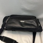 This is a Hi-Pro camera and camcorder storage bag made of black genuine leather. It is compatible with Canon, Sony, and universal brands, sized for standard camcorders. The bag has external dimensions of 13 x 6 x 6 inches and features padded compartments with a strap for accessories. It is designed to fit various types of cameras and camcorders, including compact, DSLR, and point & shoot models.
