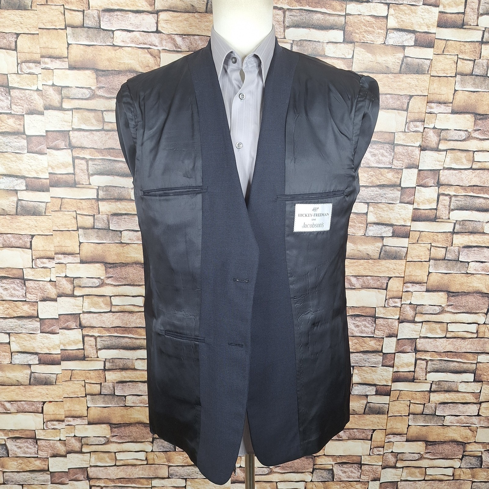 Hickey Freeman Jacket Blazer Mens 40R Dark Navy Hopsack Wool Quality used condition. Please check out the measurements before buying to ensure a perfect fit. Shirt Size on Label 40R Shoulder- Hem 31.00'' Shoulder- Shoulder 19.50'' Shoulder- Wrist 24.50'' Armpit- Armpit 21.00'' Top button 20.00'' Everything ships within a day. Spot cleaned according to manufacturer's recommendations. Has a chance of wrinkling in the mail. Feel free to message me with any questions. Thank you very much. 10/13/2025