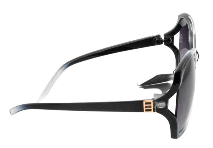 Elevate your style with these high-fashion, unisex sunglasses. The oversized, lightweight design features a solid black fading to clear plastic frame and gold temple detail, plus gradient charcoal lavender tinted lenses. This unique and trendy look is perfect for any occasion, whether you're hitting the beach or riding your motorcycle through the city. The UV400 protection ensures your eyes are well-protected from harmful sun rays making these sunglasses a versatile addition to any outfit. With a temple length of 130mm, these sunglasses are comfortable and secure to wear. Add a touch of retro or rock vibes to your wardrobe with these stylish sunglasses.