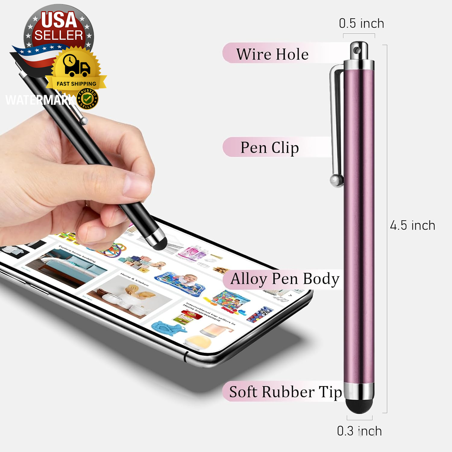 Stylus Pens for Touch Screens, High Precision Universal Stylus for Ipad Iphone Tablets Samsung Galaxy All Capacitive Touch Screens (10-Pack) No More Big Fingers: A stylus has a better touch point than the tip of your finger giving better accuracy to little touch focuses like keys on the console. No more big finger troubles. Great stylus pens for touch screens Easy To Carry: Slim body and lightweight. Clip design is great for clipping in your pocket, diary, etc. Great stylus for kids Scratch And Fingerprint Resistant: The stylus pen have the exquisite soft rubber tip,which can protect your screen from scratching and keep no fingerprints Long Lasting: The body was made from aluminum.It's very safe and long lasting. Enjoy your colorful life with 10 different color styluses. NOTE: If the tip on your stylus falls out, you can try to screw it back Universal Capacitive Stylus: 100% compatible with all capacitive touch screen devices,such as iPad,iPhone,tablets,samsung galaxy and so on Product Description 10 Colors: Purple, Red, Black, Green, Yellow, Silver, Blue, Sky-blue, Pink, Orange. Slim body, lightweight with a clip design, so it is very easy to carry anywhere. Browsing Drawing Note-taking Gaming Batteries Required? No Are Batteries Included No Color 10-Pack Brand Unbranded Material Aluminum, Rubber Country of Origin China Compatible Devices Laptop, Tablet, Smartphone Item Weight 1.13 ounces Package Dimensions 6.5 x 4.84 x 0.51 inches Shipping Fast shipping is vital for us. Our standard US shipping service is FREE. International shipping depends on location; see the listing. Your order will be shipped within 2-3 business days upon full payment received. Your order will be delivered within 2-3 business days after the handling time. We offer free shipping to the lower 48 states and ship within 2-3 business days of payment, usually sooner. We do not accept P.O. Boxes. Please provide a physical address. We are not responsible for undeliverable addresses. Returns and payment We offer a 30-day return policy from the checkout date. Require immediate payment when the buyer uses Buy It Now. FeedBack Your feedback is essential to us. After you get your package and you are satisfied with our service, please leave us positive feedback. Positive feedback is appreciated and always returned automatically—thanks for supporting a trusted seller! If you have any problem with your order / any questions, please contact us before leaving any type of feedback. For any questions, use the eBay contact system Please visit our eBay store to check out other items for sale! Thank you for shopping at our store.