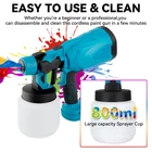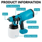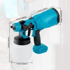 Product Description: Featu res: 【HVLP Tech】 This sprayer ejects higher-volume airflow with lower pressure, finely atomizing the paint and significantly reducing over-spray, dripping, and paint waste. It delivers a much finer finish than a paintbrush and roller, and it is highly suitable for home, garden & DIY projects on cars, doors, decks, fences, ceilings, furniture, wall siding, and artwork. 【3 Spray Patterns】 The paint sprayer can be adjusted to 3 different spray patterns: horizontal, vertical, and round. It comes with a 1.8mm nozzle, which only requires a simple switching to change the spray pattern according to your needs. 【Cordless & Effortless】 The paint sprayer paints a wall 8 times faster than a brush, saving time and labor. Large area such as walls, ceilings, exterior siding and fences that need to be sprayed can also be easily tackled. No worry about the cord being too short to use outside because the cordless paint sprayer allows you to get rid of the interference of wires so that you can work freely and effectively. 【Lightweight Design】 Our cordless sprayer gun is designed to be lightweight and easy to use, and you will not feel tired even if you use it for a long time. Its compact size also makes it easy to store and carry. 【Easy to Use & Clean】 Whether you're a beginner or a professional, you can disassemble and clean this cordless paint gun in a few minutes. It is ideal for various of painting application, including interior and exterior walls, ceilings, furniture for oil-based paints, being a good helper while working. Specification: Type: HVLP Paint Sprayer Material: Nylon + Powder Metallurgy + Plastic Power Supply: Rechargeable 21V Lithium Battery Battery Capacity: 2000mAh Nozzle Caliber: 1.8mm / 0.07in Power: 600W Frequency: 50/60Hz Pot Capacity: 800ml Rated Speed: 30000rpm Air Flow: 160L/Min Paint Flow: 100-200ml/min Optimal Spraying Distance: 15-30cm / 5.9-11.81inch Max. Viscosity: 80 DIN-Secs Size: 30cm x 26cm x 12cm / 11.81" x 10.24" x 4.72" (Approx.) Battery Quantity: 2 Charger Quantity: 1 Package Contents: 1*Paint Sprayer 2*Battery 1*Charger 1*Sprayer Cup 1*User Manual This sprayer ejects higher-volume airflow with lower pressure, finely atomizing the paint and significantly reducing over-spray, dripping, and paint waste. It delivers a much finer finish than a paintbrush and roller, and it is hi ghly suitable for home, garden & DIY projects on cars, doors, decks, fences, ceilings, furniture, wall siding, and artwork. The paint sprayer can be adjusted to 3 different spray patterns: horizontal, vertical, and round. It comes with a 1.8mm nozzle, which only requires a simple switching to change the spray pattern according to your needs. The paint sprayer paints a wall 8 times faster than a brush, saving time and labor. Large area such as walls, ceilings, exterior siding and fences that need to be sprayed can also be easily tackled. No worry about the cord being too short to use outside because the cordless paint sprayer allows you to get rid of the interference of wires so that you can work freely and effectively. Our cordless sprayer gun is designed to be lightweight and easy to use, and you will not feel tired even if you use it for a long time. Its compact size also makes it easy to store and carry. Whether you're a beginner or a professional, you can disassemble and clean this cordless paint gun in a few minutes. It is ideal for various of painting application, including interior and exterior walls, ceilings, furniture for oil-based paints, being a good helper while working.