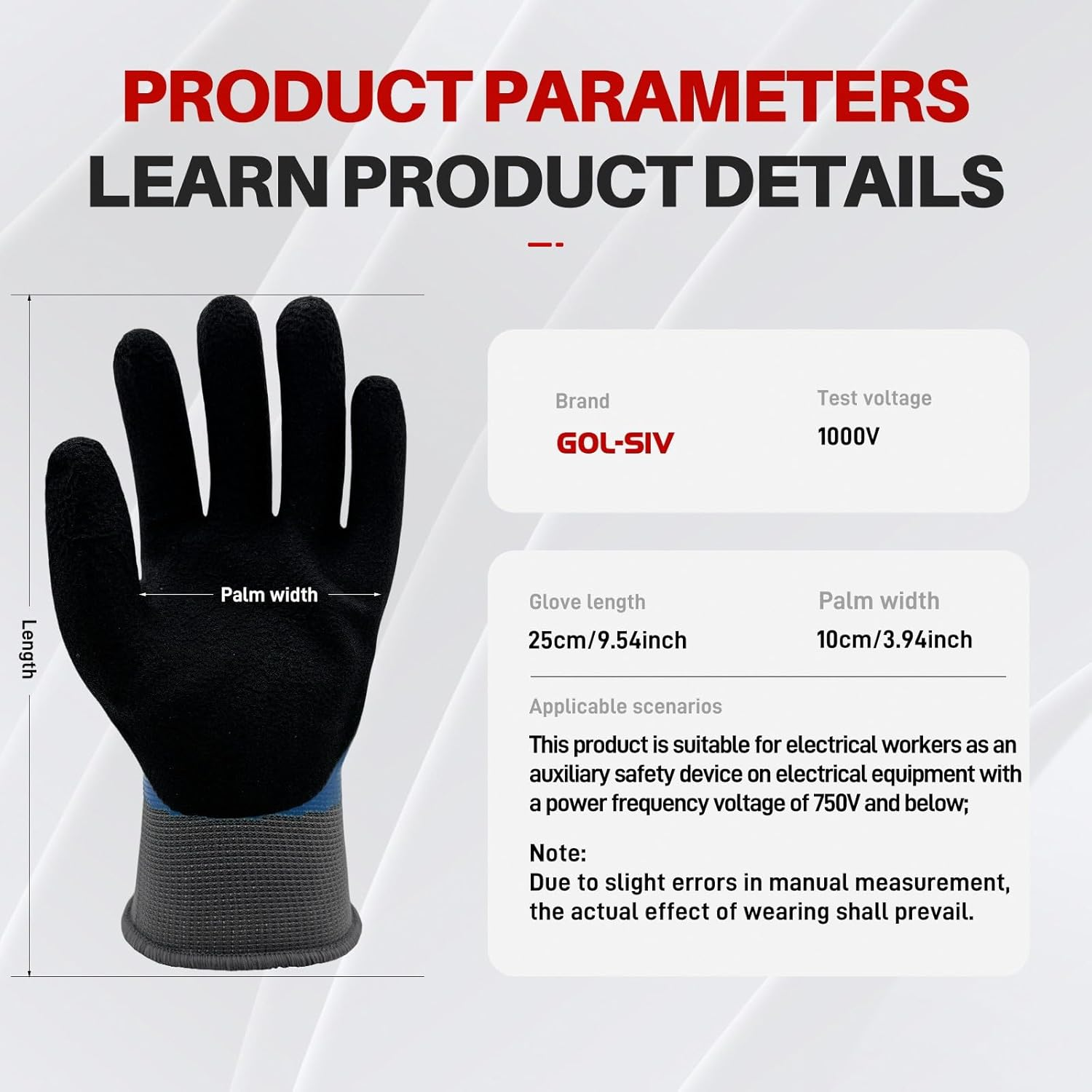 Fast Shipping On All Items 30 Days Money Guarantee Customer Support Excellent Service 100% Satisfaction Satisfaction Guaranteed High Voltage Electrician Gloves 1000V, Double Insulated, Rubber, Large, Blue Specification Item model number 1000V|double insulated Part Number GS-Glove-1kV FI-M Style Insulated Gloves Size Large Warranty Description 6 months Item Package Quantity 1 Color Blue Pattern Solid Product Dimensions 12.4 x 7.09 x 0.39 inches Material Rubber and polyester Batteries Required? No Item Weight 3.52 ounces Batteries Included? No Model 1000V|double insulated Special Feature Electrical Insulated Special Features Electrical Insulated Included Components 1 pair of gloves 7.09 inches x 12.4 inches x 0.39 inches. Weight: 3.52 oz Item Description Rubber and polyester Imported 【 Insulation Performance 】 Work gloves have insulated palms and fingers and comply with ASTM D120 standard, providing effective safety protection when operating electrical equipment at 1000V and below 【Rubberized Palm&Fingers】 The slip resistant gloves are made of rubber and have excellent insulating properties with good flame retardant properties to provide safety and reliability during operation 【Rubberized Non-Slip Design】The texture on the palm of Nylon gloves increases friction through a anti-slip design, giving you a better grip on your tools and ensuring that no mistakes are made 【Durable Flexible Nylon 】Made of wear-resistant and breathable nylon fabric, strong and durable, flexible to wear, breathable and comfortable, with a long service life 【Multi-Scene Application】The electrical insulated gloves are suitable for handling home repair and professional electrician work tasks, such as automotive repair, electrical repair, installation and maintenance of mechanical equipment, etc Product description About us We offer the best prices around on high quality products. Our E-store includes media such as books, movies, music and games while offering electronics, toys, sporting apparel, clothing, tools, general home, garden items and more. Shipping We are always working hard to ensure your package arrives as soon as possible. Please understand that some factors like weather, high postal traffic, and the performance of shipping companies are outside of our control. We offer free shipping to the lower 48 states and ship within 2-3 business days of payment, usually sooner. We do not accept P.O. Boxes. Please provide a physical address. For shipping outside of the continental USA, we only use eBay's Global Shipping Program.The item is shipped to KY and then sent to the rest of the world. International customers are responsible for all duties and taxes. Continue to check out to calculate costs for shipping the item to your country. Messages regarding eBay's Global Shipping Program MUST be directed at eBay EXCLUSIVELY. Returns We offer a 30-Day Return Policy on items in which you are not completely satisfied with. You have the option of a full-refund or an exchange of the item. No returns are available on items shipped outside of the USA Satisfaction We try over very best to make sure every customer is completely satisfied. If there's a problem, message us! We're happy to help. Payment Options Shop With Confidence