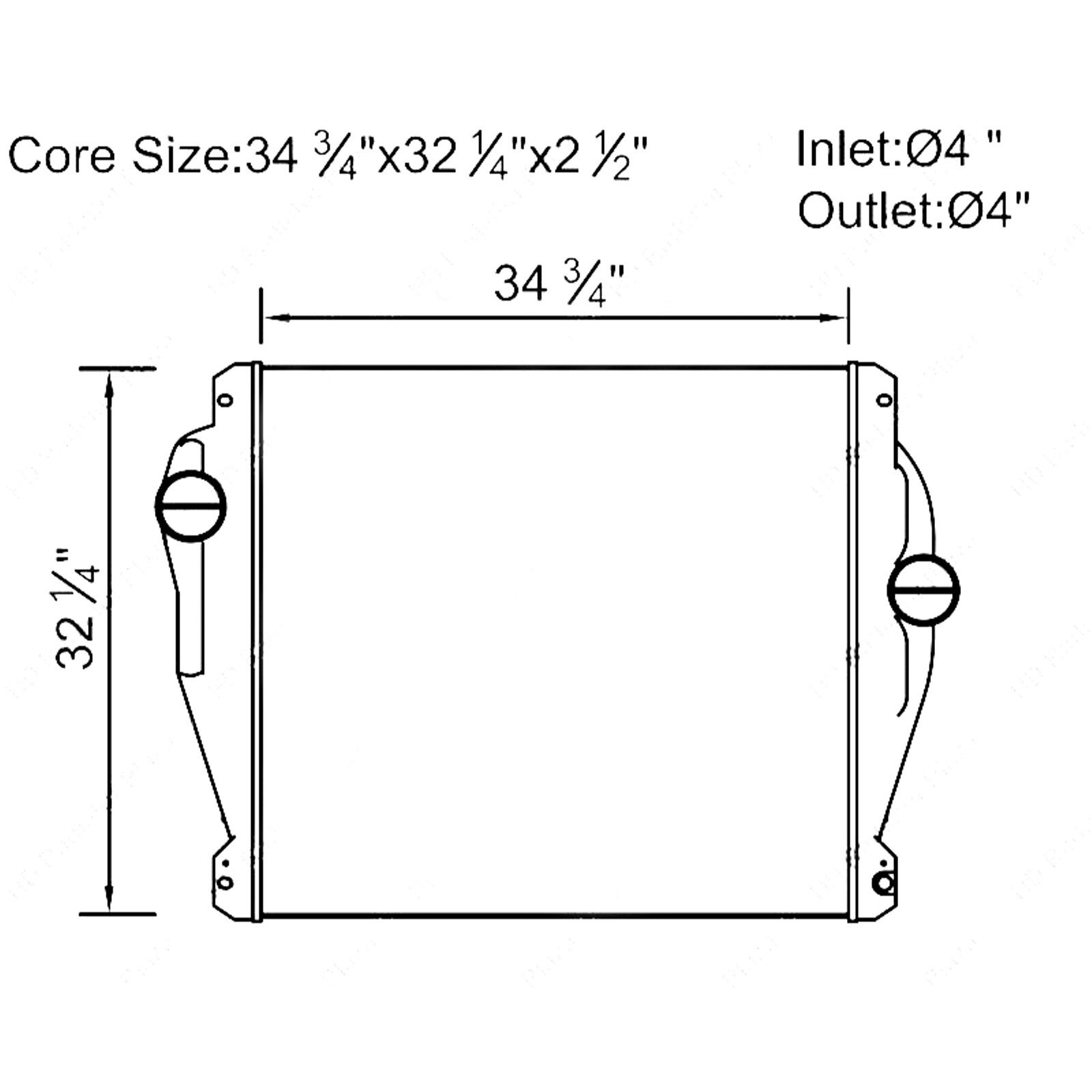 Specification Type: Charge Air Cooler Features: Durability Tested, 100% Leak Tested Items Included: Charge Air Cooler Color: Unpainted Manufacturer Part Number: 2400-005 OE/OEM Part Number: 4401-1719, 222235, FL6L, FRT18127, CAC354, 3E0118490001, 01-31241-000, 44011719 Performance Part: No Manufacturer Warranty: Yes Finish: Unpainted Interchange Part Number: 4401-1719, 222235, FL6L, FRT18127, CAC354, 3E0118490001, 01-31241-000, 44011719 Item Length: 32 1/4" Item Width: 34 3/4" Modified Item: No Custom Bundle: No Core Length: 32 1/4" Core Height: 34 3/4" Core Thickness: 2 1/2" Inlet Diameter: 4" Outlet Diameter: 4" Placement on Vehicle: Front Non-Domestic Product: No Other Part Number: 3E0118490001 // 01-31241-000 Fitment 2008-2011 Western Star 4900SA 2008-2011 Western Star 4900EX 2008-2012 Western Star 4900FA 2009-2009 Freightliner FLD120SD 2009-2009 Freightliner M2 112 2008-2009 Freightliner FLD120 2008-2009 Freightliner Coronado 2008-2011 Freightliner Columbia 2008-2011 Freightliner Century Class 2008-2009 Freightliner Classic 2008-2008 Freightliner Argosy 2008-2009 Freightliner Business Class M2 2008-2013 Freightliner Cascadia Features & Benefits