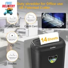 High-Performance Paper Shredder, 14-Sheet Cross Cut, 6.6-Gallon Basket Features Professional-grade Performance: Our High-Performance Paper Shredder is designed for heavy-duty shredding, making it the ideal choice for small businesses, home offices, and professional settings. With a maximum capacity of 14 sheets at a time, this shredder effortlessly handles A4-sized documents, credit cards, and even paper clips, ensuring that your confidential documents are securely destroyed. Jam-proof Technology: Say goodbye to frustrating paper jams with our innovative jam-proof design. Equipped with US Patented stainless cutter, this shredder is 100% protected against damages caused by paper jams. This not only prolongs its lifespan but also guarantees continuous shredding without interruptions, saving you time and effort. Secure and Efficient: Our cross-cut paper shredder ensures a P-4 high-security level, shredding documents down into tiny 5/32" x 1-13/32" (4x35mm) particles. You won't have to waste time removing staples or clips, as this shredder effortlessly handles them. Additionally, it can shred credit cards, CDs, and junk mail one at a time, providing comprehensive document destruction. Convenient and User-friendly: Designed with your convenience in mind, our shredder features a 3-mode control switch (Auto, Off, Reverse), allowing for easy operation and quick clearing of any paper jams. The auto start/stop function further simplifies the shredding process, while the manual reverse function helps resolve any potential issues. Plus, the portable handle and 6.6-gallon basket offer hassle-free emptying, reducing the frequency of maintenance tasks. Reliable Customer Service: We stand behind the quality of our product and provide reliable customer service. With our 1-year warranty, you can purchase with confidence. If you have any questions or concerns regarding the usage of our shredder, our dedicated support team is available 24/7 to assist you. Invest in our High-Performance Paper Shredder and experience the ease and peace of mind that comes with secure document destruction. Product Description Paper Shredder:14-Sheet High Security Level P-4 Cross-Cut Shredder ,Credit Card/CD/Staple/Clip,Paper Shredder for Home Office Our story with 20 Years experience Suntiko care privacy,especially company secrets and important documents, including business letters, CDs, cards, or manuscripts, etc. In 2006, I work for a famous HK listed company.In an inventory ,Archives Department throw the old documents or the useless manuscripts to the bin directly , without any special handle .There may be a potential risk of leakage when these documents or manuscripts are recycled. So in order to solve such problems , we start our paper shredder business . What to make our product unique? For starter,we use what we made, we haven't consider it’s safety , no certificates ,shredder always jammed .It brings a lot of trouble to our users. Later,we make a serious of update .After updated ,we passed Relevant certificates to make sure our paper shredder safety when using , and reach to the affect of security. Why we love what we do ? Suntiko delicate to strict quality control,use the fireproof material , highest security cutters(up to P-5).Most important , we insist on customer first ,and strive for the best protection and security for each user's information. Suntiko Paper Shredder for Office OUR MISSION Suntiko committed to providing customers with the highest quality office supplies, so every customer can find the right paper shredder for home use Max.Sheet Capacity:14 sheets at a time Bin Capacity:6.6 gallon(25L) Max Noise Level:68dB Cut size:5/32" x 1-13/32"(4x35mm) Rated current:(amp.):110-120V AC/60Hz,4.0A Suntiko shredders for home office heavy duty With 14 sheets 6.6Galons(25L) Bin Suntiko paper shredder heavy duty with 14-sheet capacity without removing staples, quickly shreds It can shred paper with Clips/Staples/CD/Card,Paper shred into 5/32" x 1-13/32"(4x35mm) With the Jammed release and overheated protection, it is convenient for your using experience. Cross-cut Shredder perfects for keeping your privacy (security level P-4). It shreds your important and confidential documents, and disposes of them safely. Which minimizes your chances of falling victim to the havoc and hassle of identity theft. Commercial paper shredder features Convenient design paper shredder heavy duty has 3-mode control switches ( Auto, Off, Reverse); Auto start / stop and manual reverse functions simplify shredding and paper jam clearing processes, release you from the frustration of jamming. Through the large transparent window on the bin wall you can keep an eye on the fullness of the trash and easily empty it by lifting with handle design. Overheat and Overload Protection The paper shredder heavy duty for home office continuous shredding at full load for 5 minutes before needing a 30-minute cool-down with overheat/overload LED indicator. If the shredder runs continuously beyond its max run time, it will shut off automatically to protect the motor from overheating. 5 Minutes Non-Stop Working With 5 minutes Non-Stop Shredding,overload operation of the Home shredder machine will Auto start overheating protection with 30 munites cooling time. Suntiko CD210 paper shredder for home use HIGH SECURITY LEVEL P-4 CROSS CUT Shredder machine can shred paper with Clips/Staples/CD/Card,Paper shred into 5/32" x 1-13/32"(4x35mm) ,up to P-4 security level SAFETY LOCK WITH HANDLE Shredders include satty lock inside the BIN ,it make sure our users can use the shredder more safty (it will stop working when the head machine lift up from the BIN).with Large bin 6.6 Gallons hold 350 sheets Perfect Shredder for Office Durable crosscut shredder is specially designed for home and office users with heavy duty cycle. Ther shredder is easy to use and can shred max 14-sheet of paper per pass for saving your time. Also, it comes with larger basket for less frequent empty