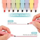 Elevate Your Stationery Game: highlighters offer a beautiful range of pastel colors that are perfect for journaling, note-taking, and more Experience Ultra-Smooth Writing: Our soft chisel tips provide a comfortable writing experience that glides effortlessly across the page Quick-drying:Our high-quality pastel ink dries quickly and won't smear, so you can highlight with confidence Slim and Portable Design: Our pocket-sized highlighters are lightweight and take up minimal space, making them perfect for on-the-go use Versatile Chisel Tip: With two line widths (1mm and 4mm), our highlighters can be used for highlighting, underlining, and even drawing