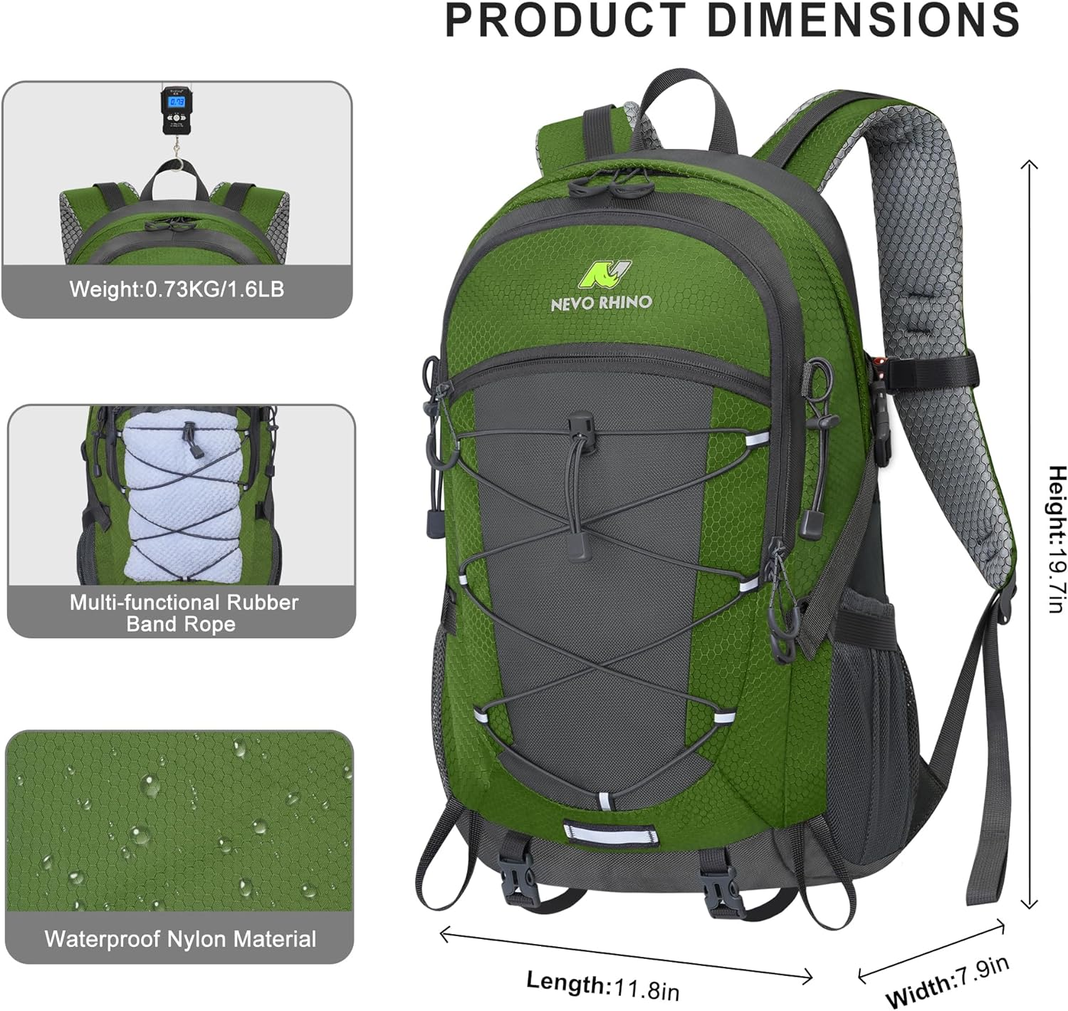 Hiking Backpack 25L/35L/40L/45L Waterproof Outdoor Day Pack, Lightweight Camping Travel Backpack for Men Women Polyester Imported Large Capacity & Organized: This travel backpack 35L ( 11.8*7.9*19.7 inch ) features with multi-compartment design includes one main zipped compartment, one zipped middle pocket, two zipped front pockets. There is a velcro to fix the water bag liner in the main bag and a water pipe hole on the top side of the backpack to assemble the water bag system. You can easily organize all your necessaries with this hiking backpack for men women Durable & Waterproof Material: This lightweight backpack is made of high quality 210d tear proof and waterproof fabrics with smooth zippers. Pack and shoulder nylon strap is not easy to tear even if it bears heavy items. All stress points are reinforced with bar tacking to increase its longevity. We also give away a rain cover in the bottom pocket of the backpack. Regardless of the weather, just take this waterproof backpack for men women to ensure that all your items remain dry Ergonomic and Comfortable Design: The ventilated mesh padding shoulder straps and backside, along with the breathable system and lightweight design, make this backpack comfortable to wear even during long hikes. Keep it cool even in summer. The perfect day hiking backpack for outdoor sports Unique Function & Versatile: Stay safe on your outdoor adventures with our camping backpack's unique reflective signs and elastic fasteners for trekking sticks. The chest buckle also doubles as a survival whistle for emergency situations. These various sizes of backpacks provide enough options for outdoor travel,camping,hiking and fishing. It meets the size requirements for most airlines. This camping backpack can also be used as hiking backpack, travel bags and business bag Service: If you have any problems, please reach out to us, we will reply within 24hrs. (We provide services for quality problems within 1 year and customer service) N NEVO RHINO Hiking Backpack 35L/45L Waterproof Outdoor Day Pack , Lightweight Camping Travel Backpack for Men Women Age Range Description Adult Style Travel Backpacks Capacity Total 35 Liters Item Dimensions LxWxH 7.9 x 11.8 x 19.7 inches Color Soft Armygreen Item Weight 0.78 Kilograms Material Nylon Suggested Users unisex-adult Package Weight 0.8 Kilograms Sport Type Trekking, Hiking Outer Material Polyester, Nylon Number of Items 1 Model Name 9033 Item Package Dimensions L x W x H 12.05 x 10.47 x 4.21 inches Size 35L Shipping Fast shipping is very important for us. Our standard US shipping service is FREE. Your order will be shipped within 2-3 business days upon full payment received. Your order will be delivered within 2-3 business days after the handling time. We only ship to the confirmed PayPal address. We reserve the right to cancel any order for any reason at any time. We are not responsible for undeliverable addresses. Returns and payment We offer a 30 days return policy from checkout winning date. We allow only PayPal as payment method FeedBack Your feedback very important to us, after you get your package and you are satisfied with our service please leave us positive feedback If you have any problem with your order / any questions please before leave any type of feedback For any questions, using eBay contact system Please visit our eBay store to check out other items for sale! Thank you for shopping at our store.
