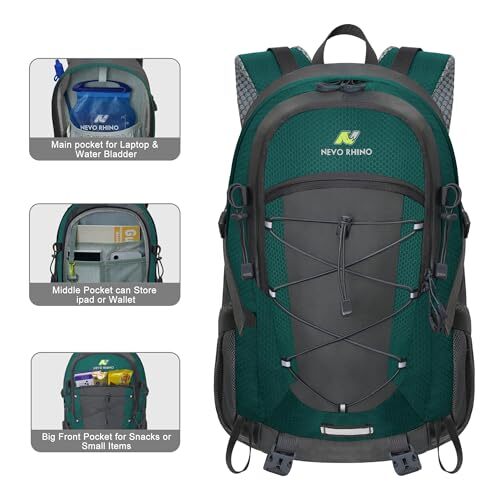 Large Capacity & Organized: This travel backpack 35L ( 11.8*7.9*19.7 inch ) features with multi-compartment design includes main zipped compartment, zipped middle pocket, zipped front pockets. There is a velcro to fix the water bag liner in the main bag and a water pipe hole on the top side of the backpack to assemble the water bag system. You can easily organize all your necessaries with this hiking backpack for men women Durable & Waterproof Material: This lightweight backpack is made of high quality 210d tear proof and waterproof fabrics with smooth zippers. Pack and shoulder nylon strap is not easy to tear even if it bears heavy items. All points are reinforced with bar tacking to increase its longevity. We also give away a rain cover in the bottom pocket of the backpack. Regardless of the weather, just take this waterproof backpack for men women to ensure that all your items remain dry Ergonomic and Comfortable Design: The ventilated mesh padding shoulder straps and backside, along with the breathable system and lightweight design, make this backpack comfortable to wear even during long hikes. Keep it cool even in summer. The perfect day hiking backpack for outdoor sports Unique Function & Versatile: Stay safe on your outdoor adventures with our camping backpack's unique reflective signs and elastic fasteners for trekking sticks. The chest buckle also doubles as a survival whistle for situations. These various sizes of backpacks provide enough options for outdoor travel,camping,hiking and fishing. It meets the size requirements for most airlines. This camping backpack can also be used as hiking backpack, travel bags and business bag Service: If you have any problems, please reach out to us, we will reply within 24hrs. (We provide services for quality problems within 1 year and )