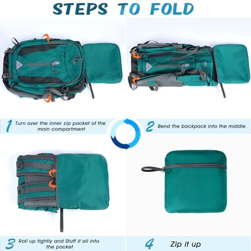 Hiking Backpack 40L Lightweight Packable Camping Backpack Waterproof Green